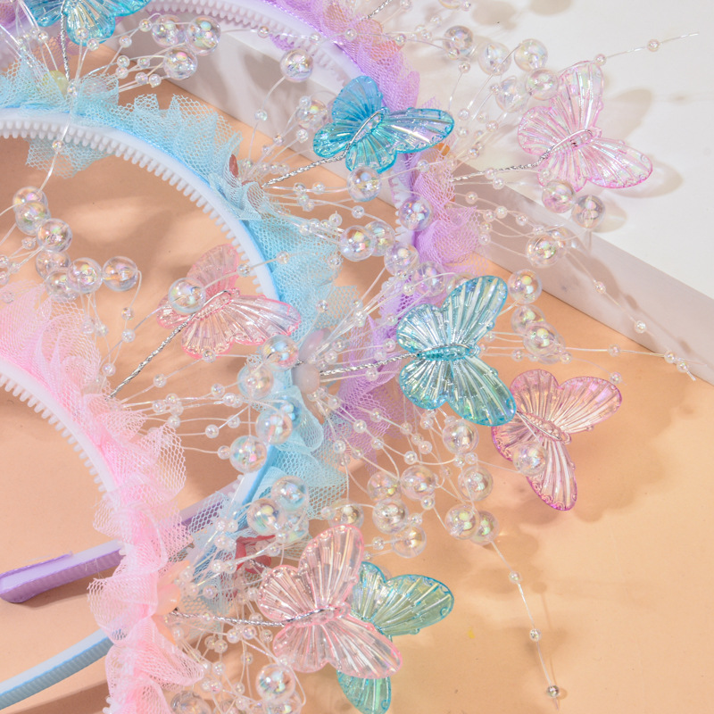 wearing flower butterfly headband [pink without light]]