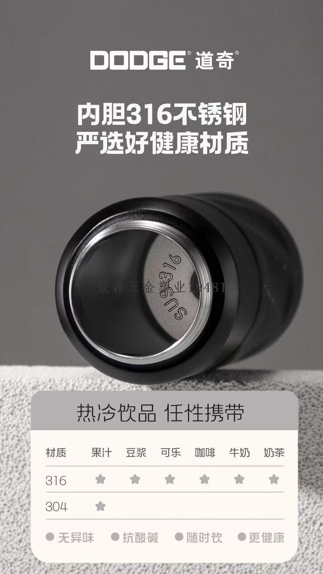 Selling points: outdoor travel, sports fitness, office leisure. The cup body is made of 316 stainless steel, while the outer is 304 stainless steel. Press and open the lid, one cup can be used for multiple drinks (direct drinking + straw). The woven carry strap is convenient for travel.