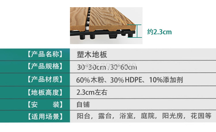 30cm long * 30cm wide * 2.3cm thick