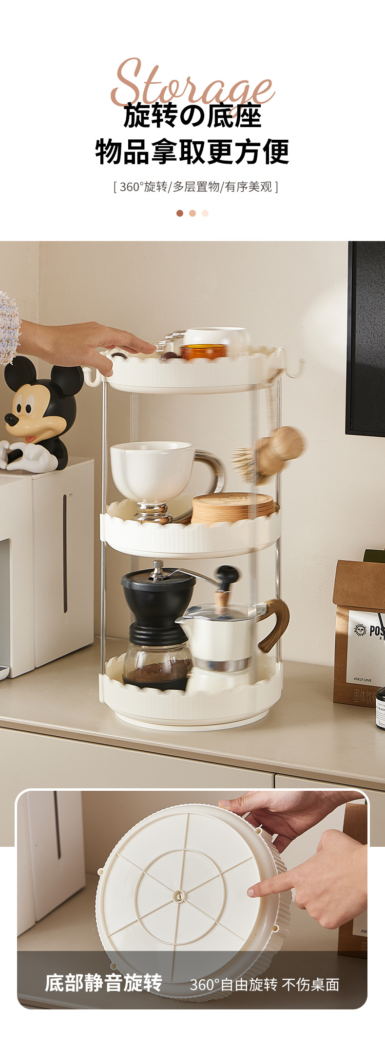 8137-3 rotating storage rack cream color