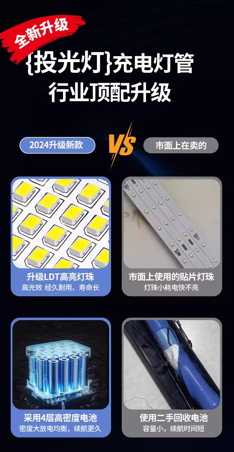 露营灯 充电照明灯 摆摊夜市灯 管户外超长续航防水帐篷灯led应急灯 led充电灯 停电照明应急灯 无线磁吸长条灯 露营户外摆摊地摊夜市灯