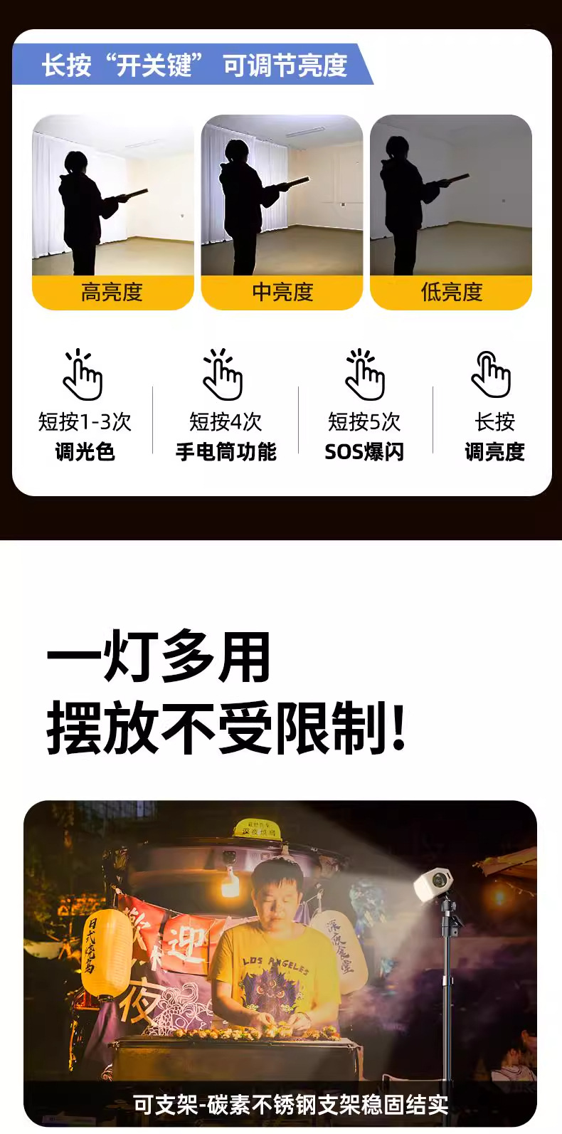 充电照明led灯磁吸户外露营应急停电地摊专用超长续航摆摊夜市灯 夜市摆摊专用led灯 超亮户外照明灯 超长续航露营灯 应急地摊充电灯