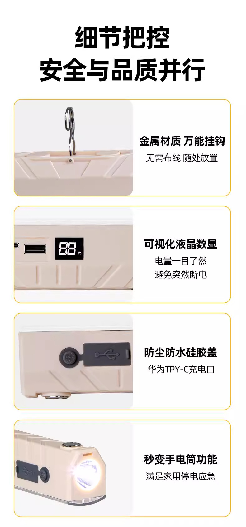 led充电照明灯 磁吸户外露营应急停电地摊专用超长续航摆摊夜市灯 夜市摆摊灯 地摊充电式应急照明灯户外露营磁吸挂灯 超长续航免插电
