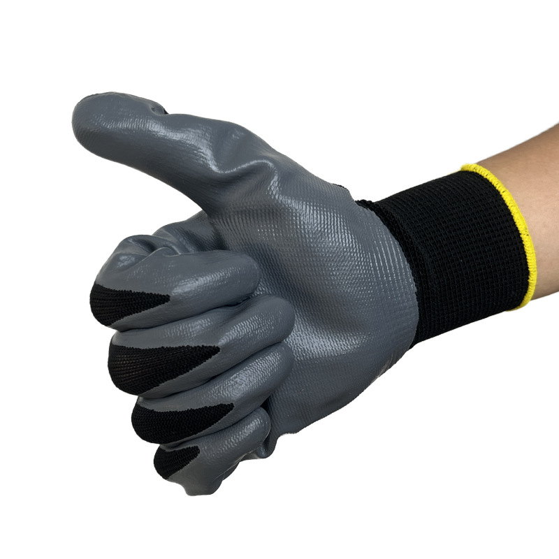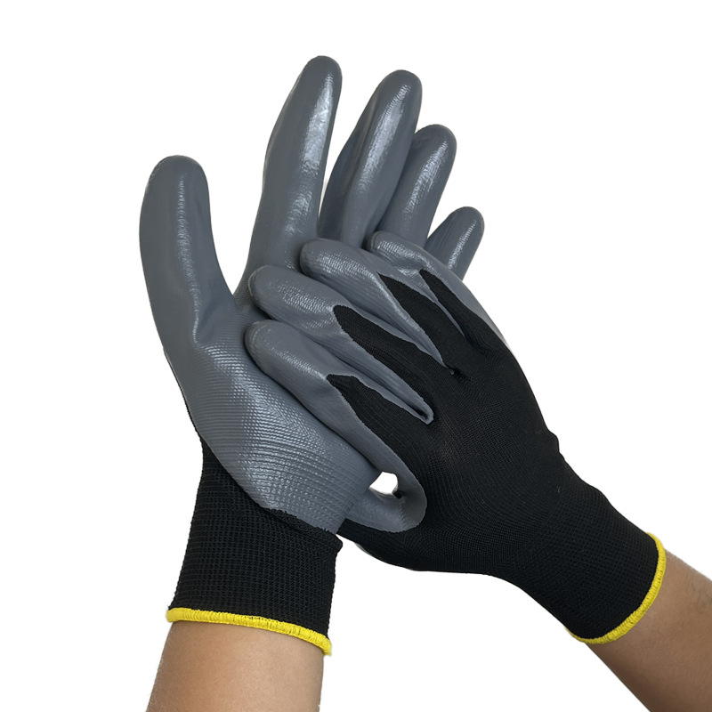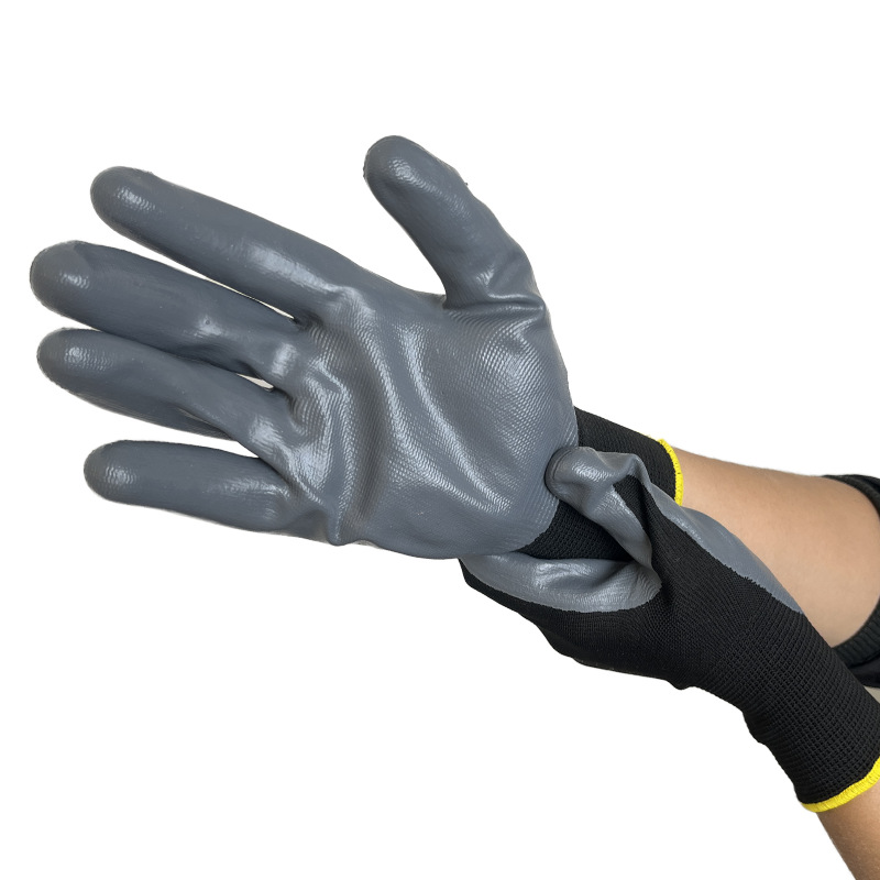 black and gray foam gloves