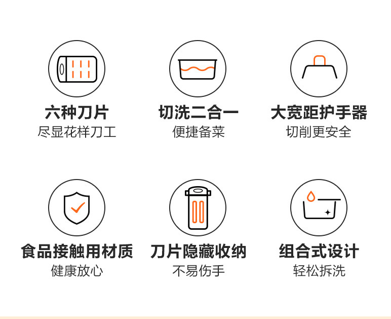 six-in-one stainless steel chopper (with box body hand-guard)
