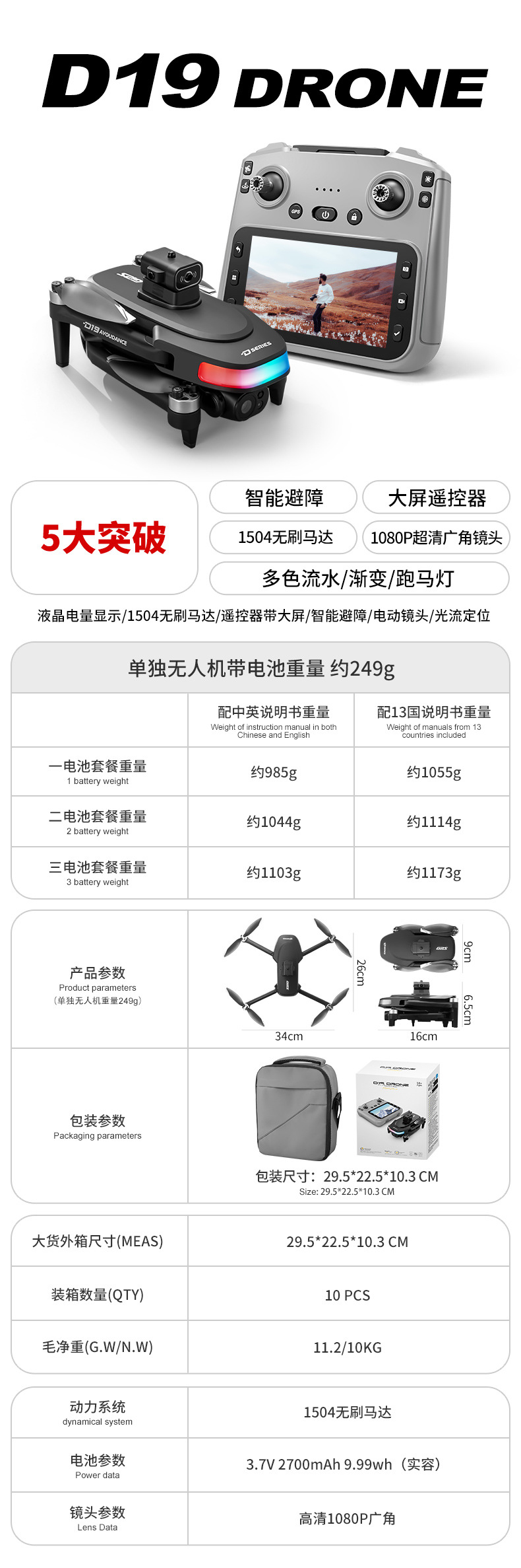 Battery: 3.7V 2700mAh high-pressure high-rate lithium battery