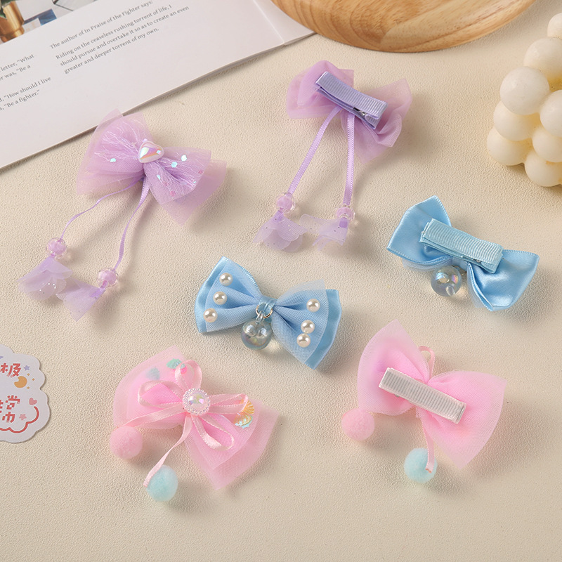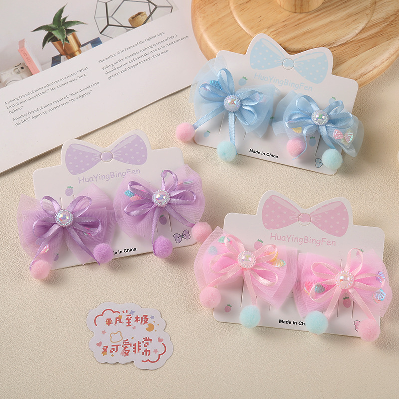 3# fur ball tassel bow barrettes (one pair price)
