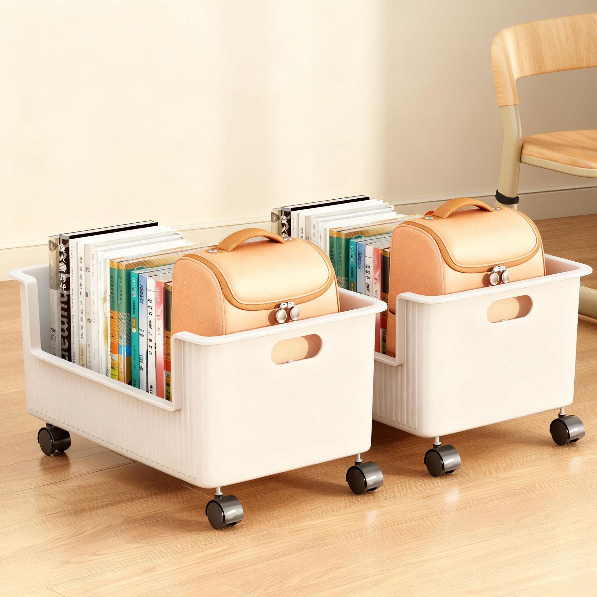 under-the-desk book storage box-white large size with wheels