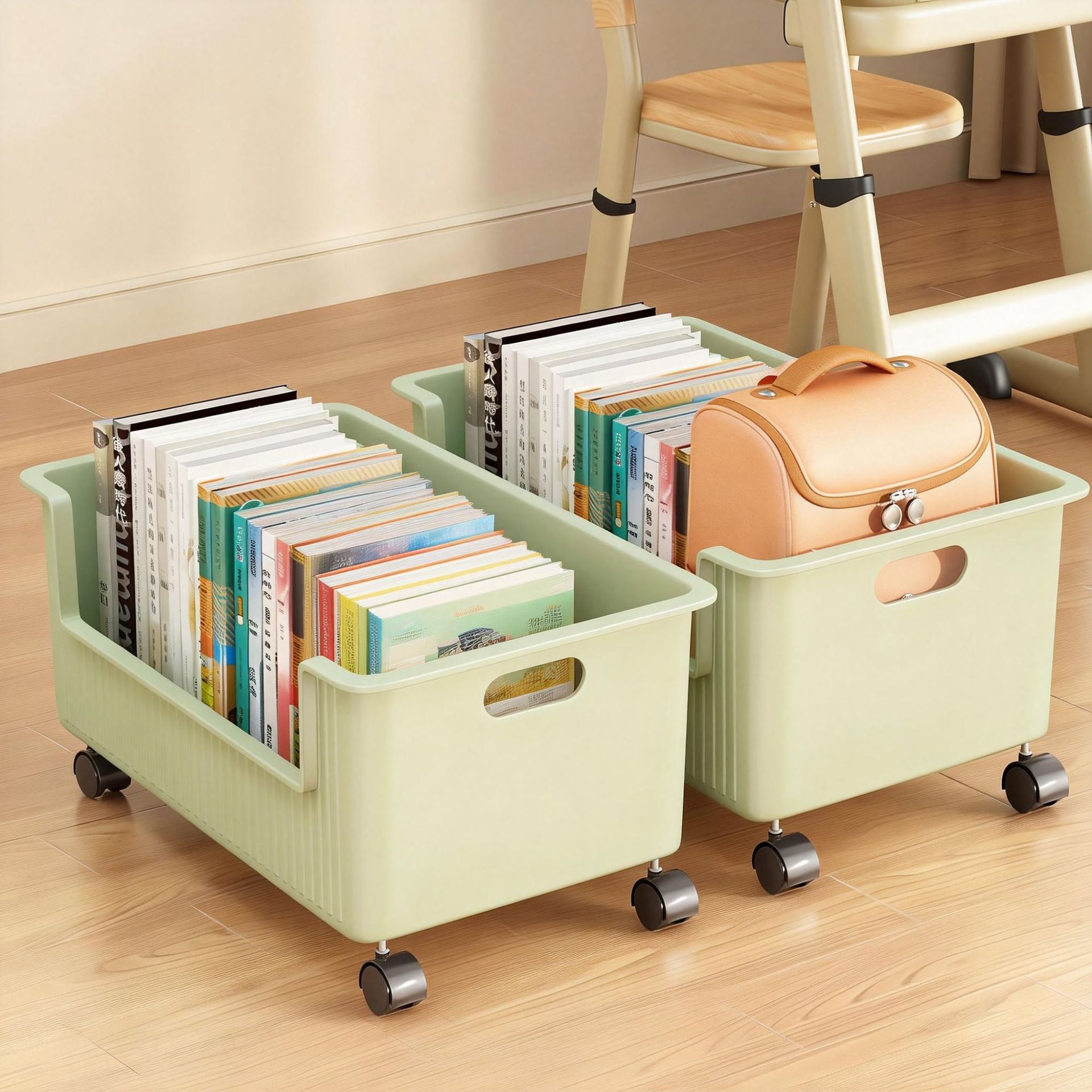 under-the-desk book storage box-green plus size with wheels