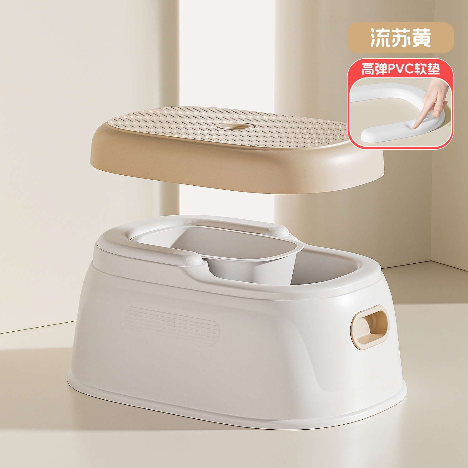 [3-in-1-washbasin/toilet/foot stool] tassel yellow [pvc soft cushion]]