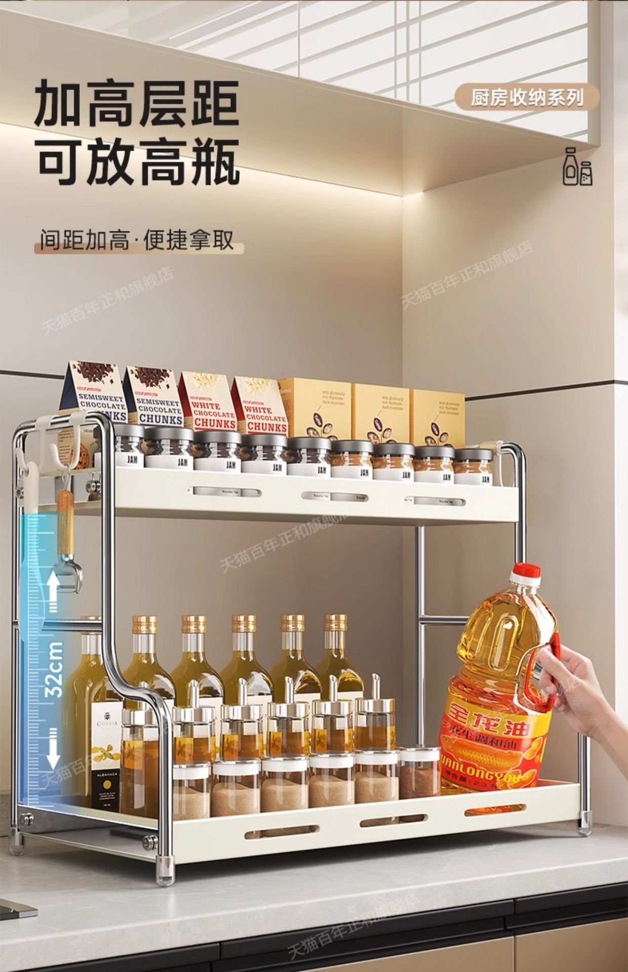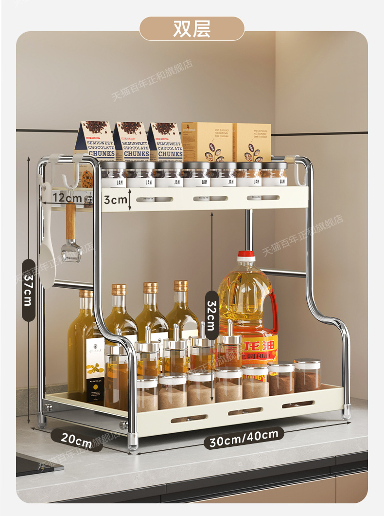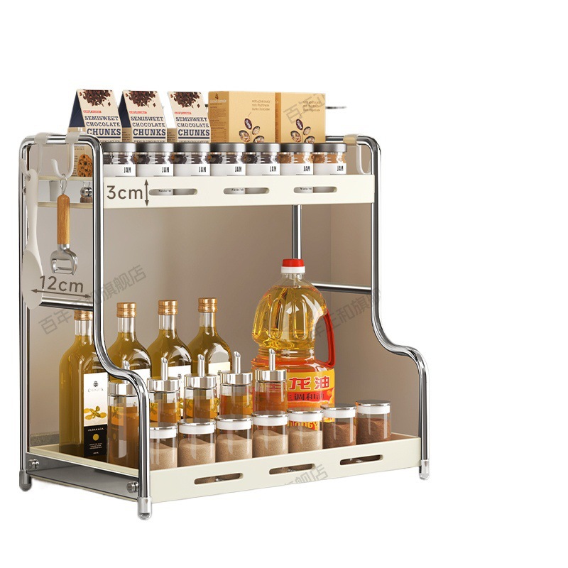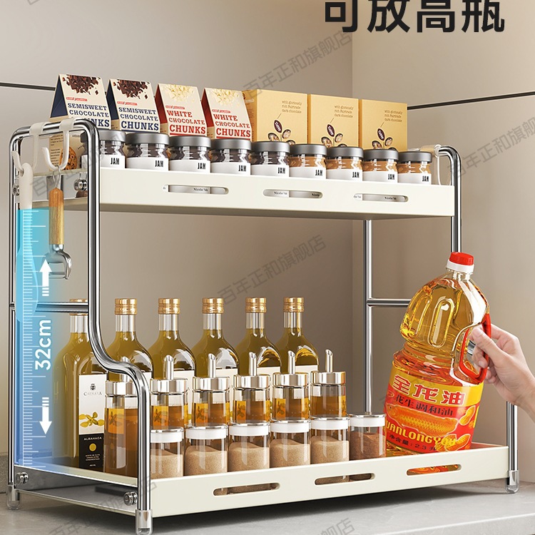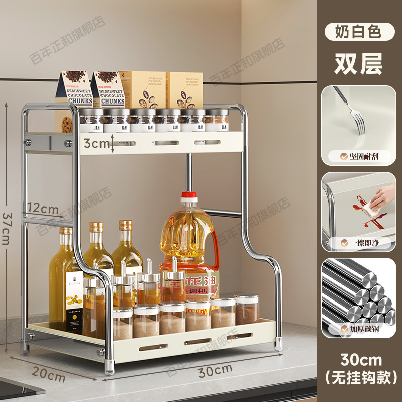 lengthened upgraded [40 steel] two-layer seasoning rack milky white