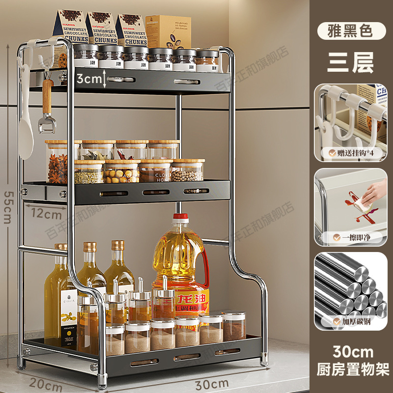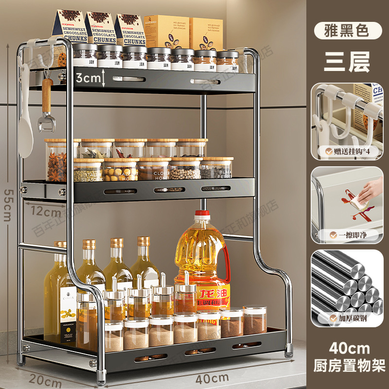 lengthened upgraded [40 steel] three-layer seasoning rack black