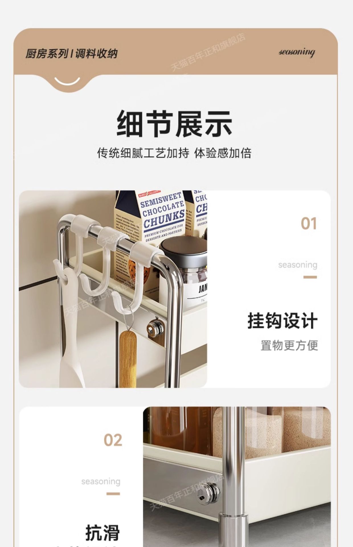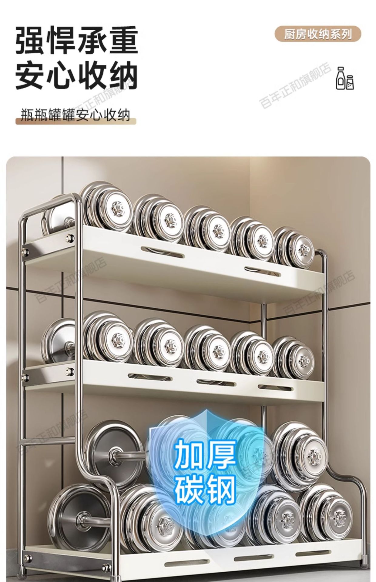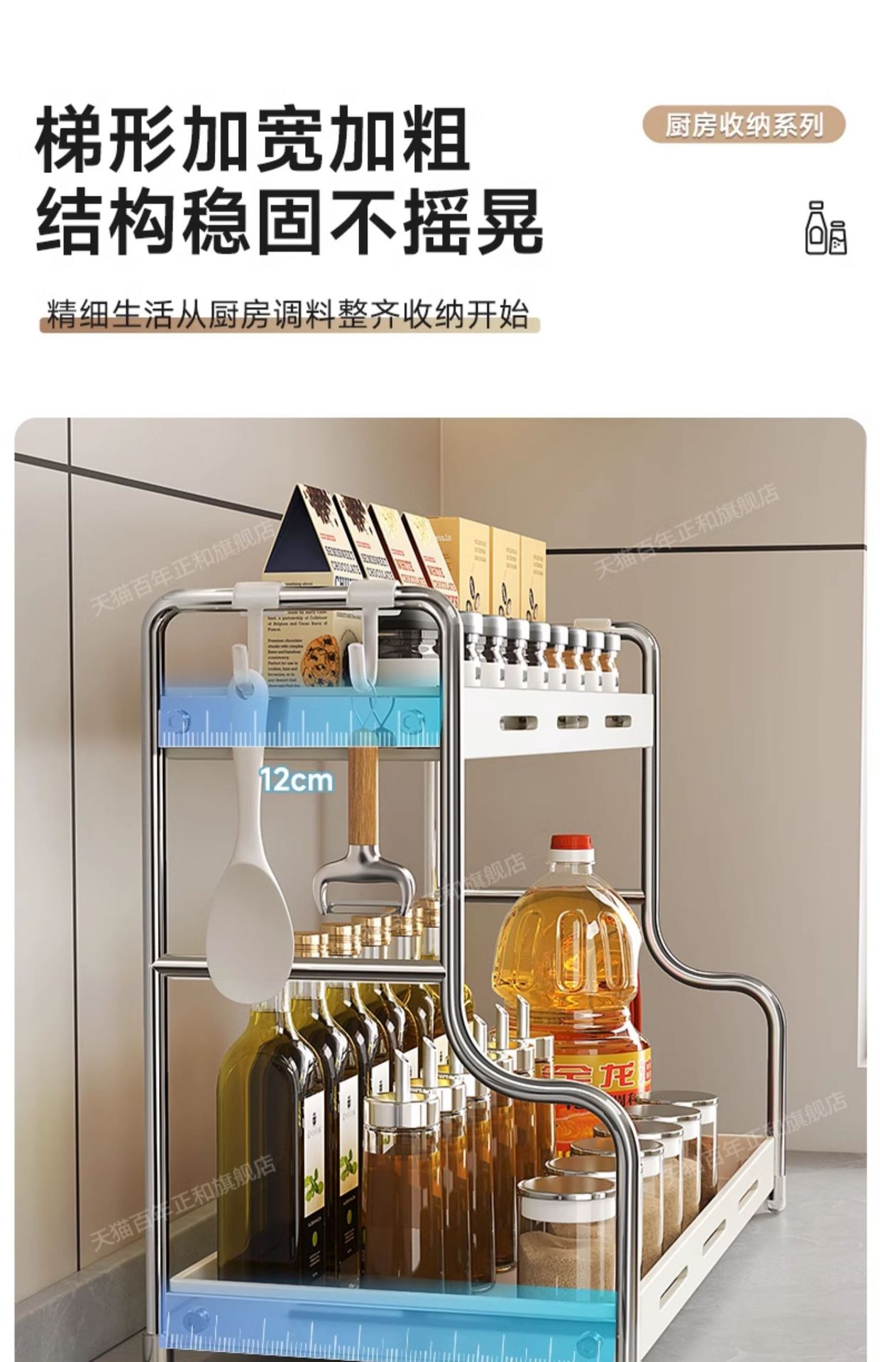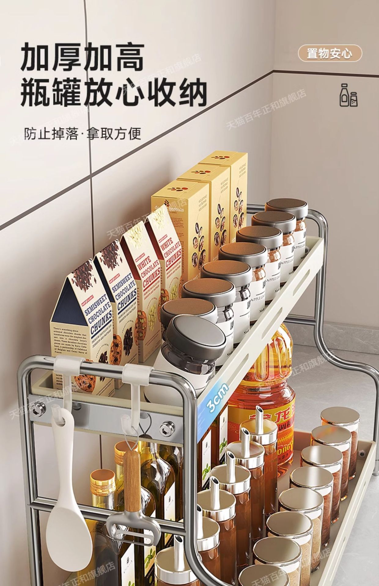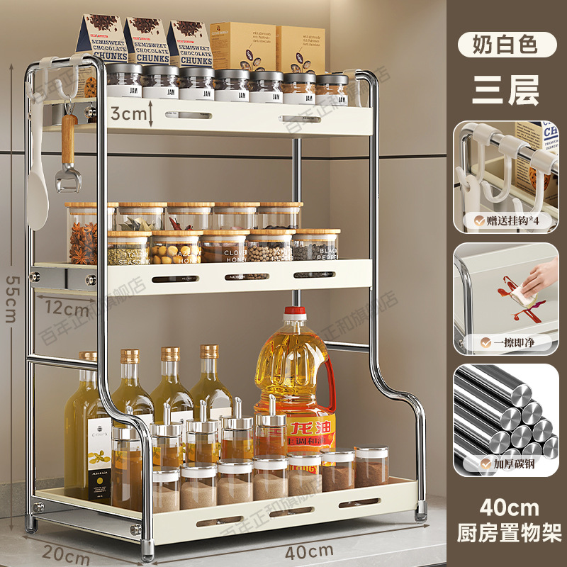 lengthened upgraded [40 steel] three-layer seasoning rack milky white