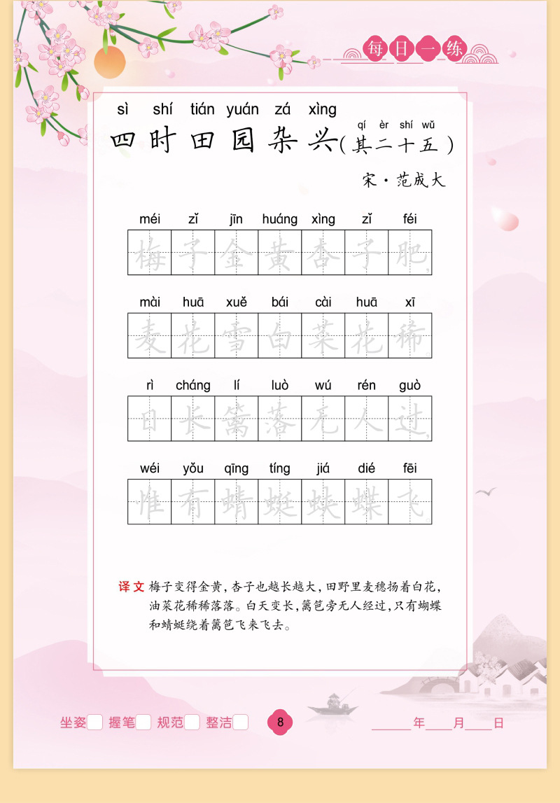 80 ancient poems calligraphy practice board