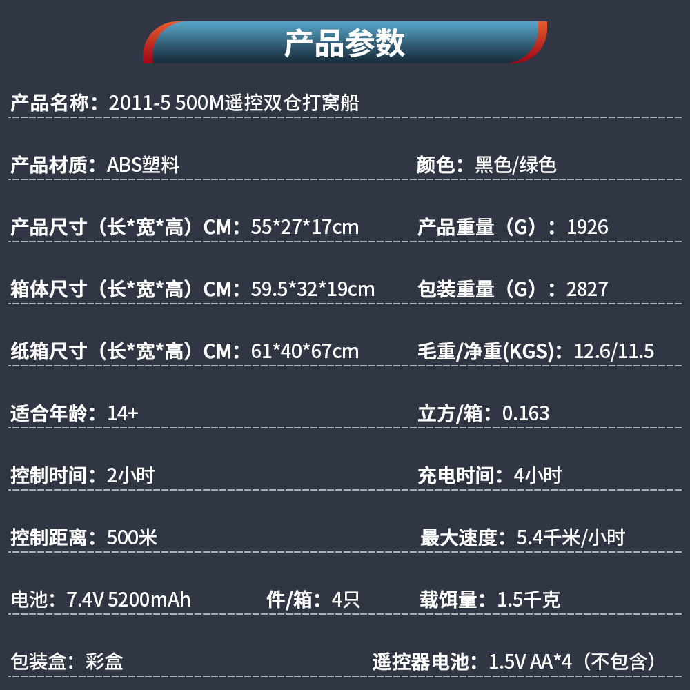 Function DescriptionForward/Backward/Left Turn/Right Turn/Drop Bait/LED Lure Fish