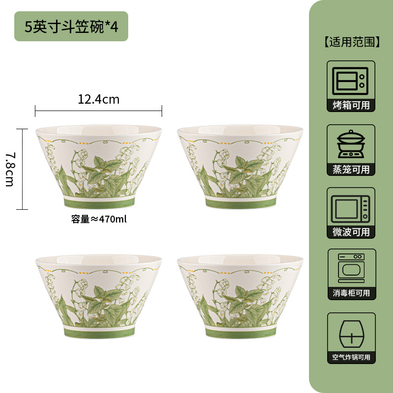 5-inch rain-hat shaped bowl-milk white glaze chunling language-4 pack