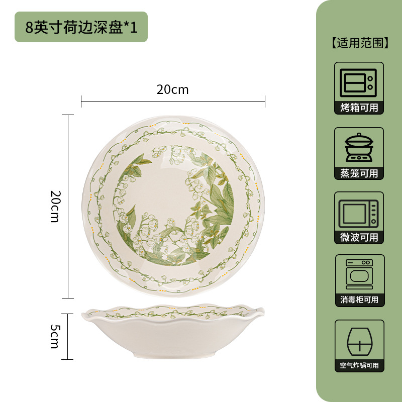 8-inch ruffled deep plates-milk white glaze chunling language-2 pack