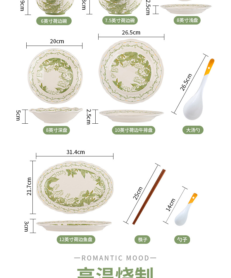 8-inch ruffled deep plates-milk white glaze chunling language