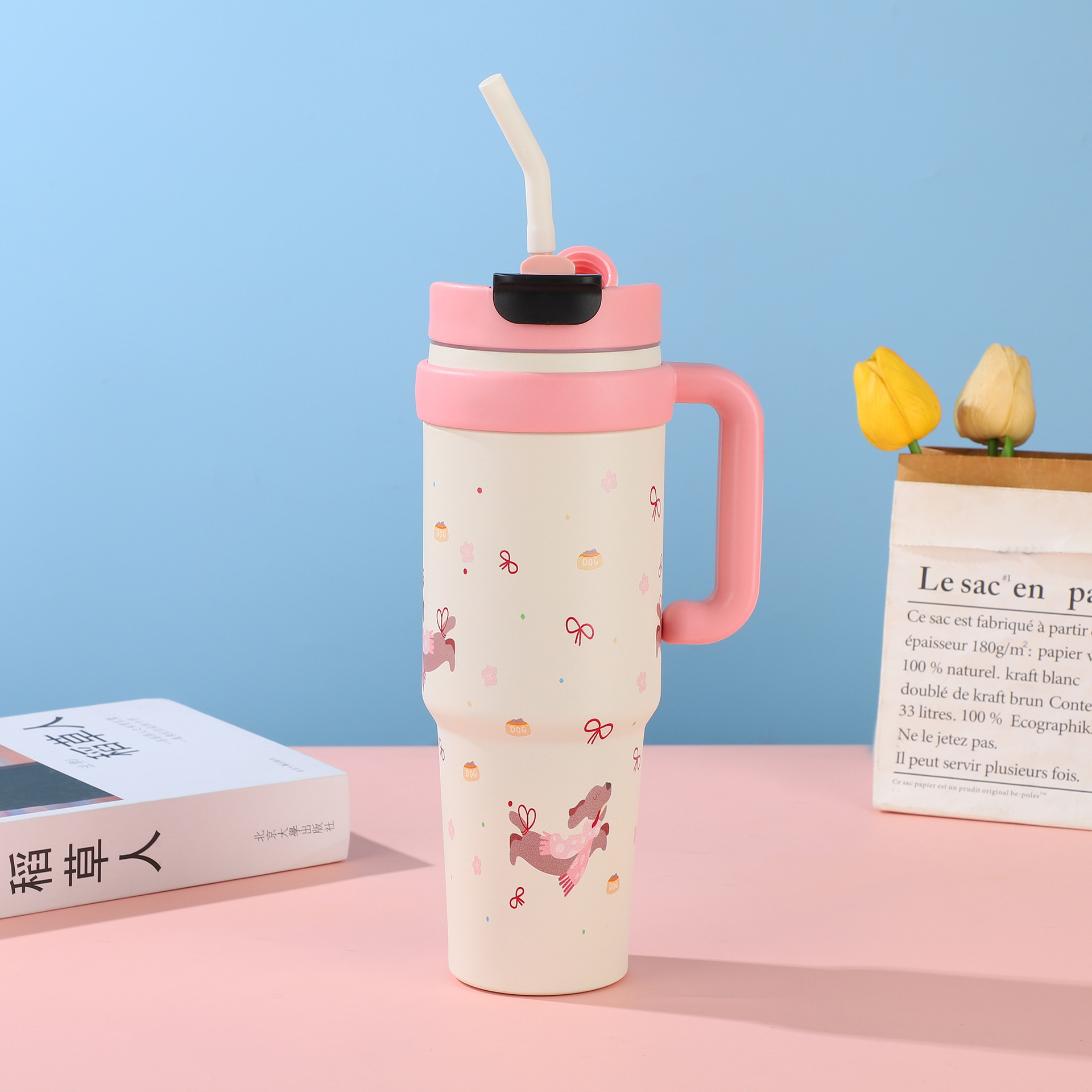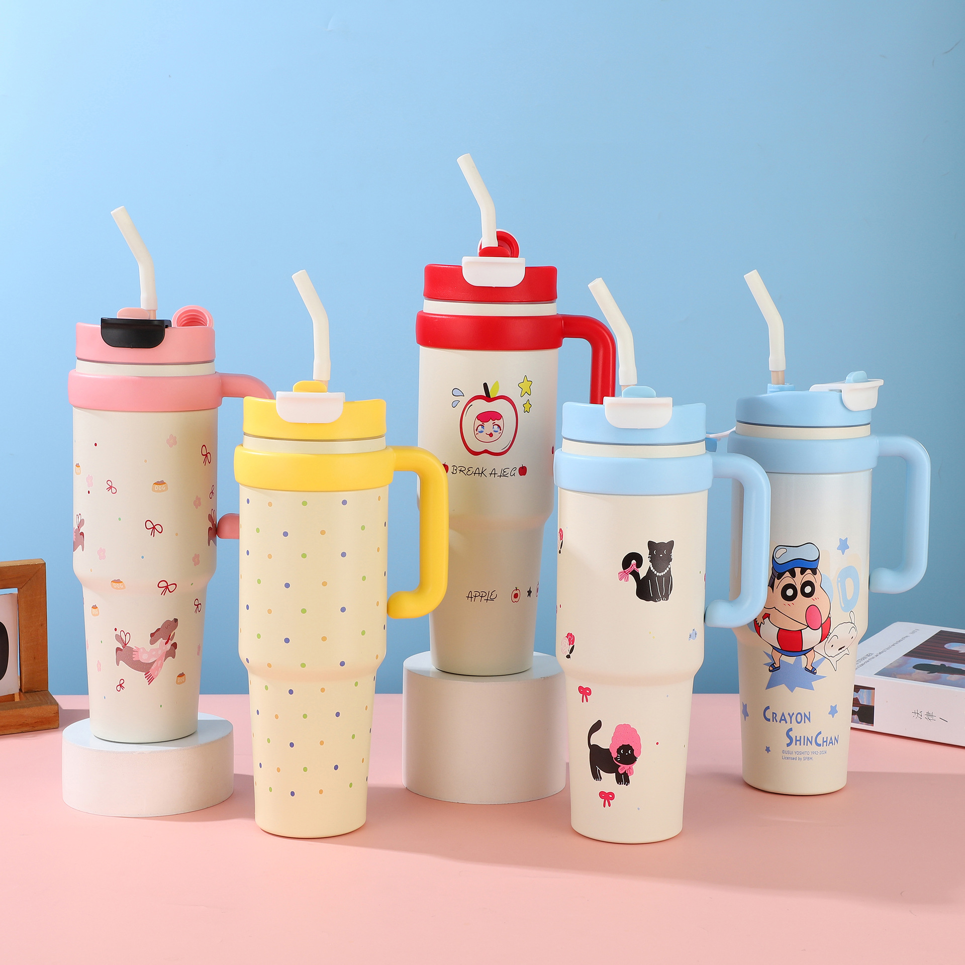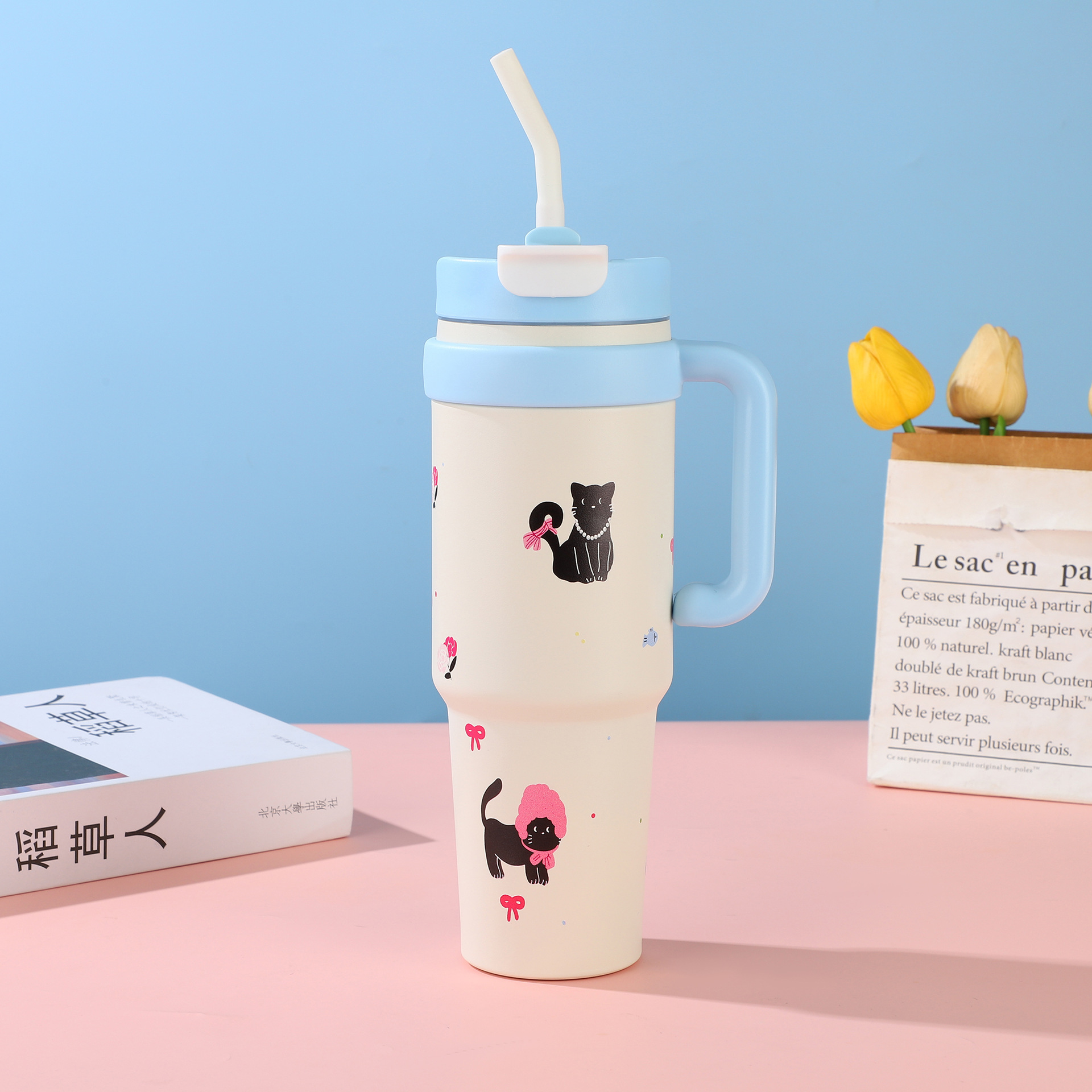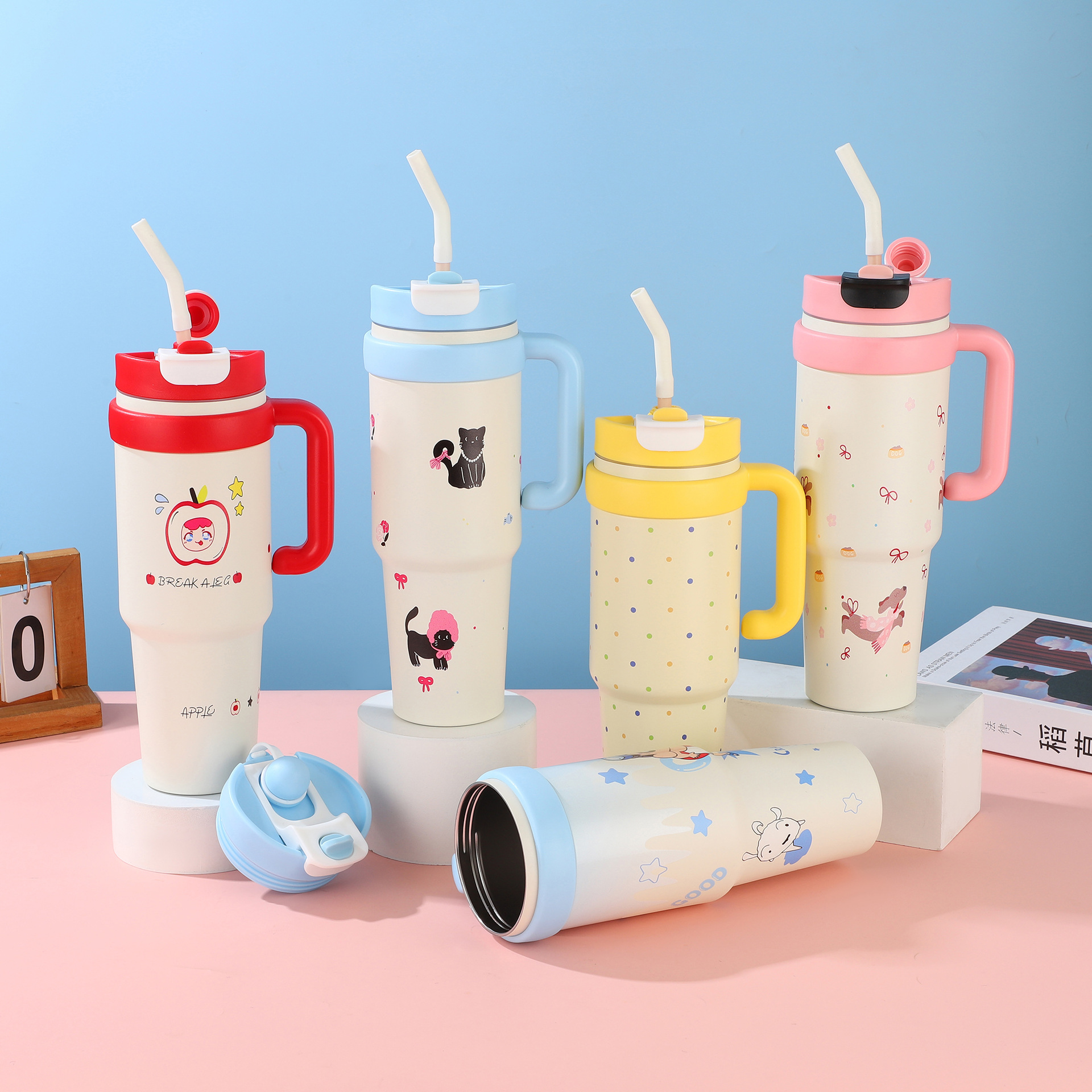 style: with handle, large capacity, with straw, tumbler