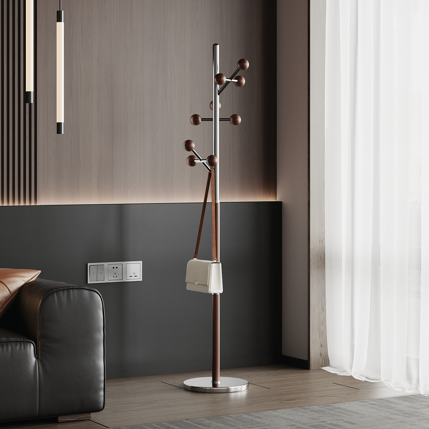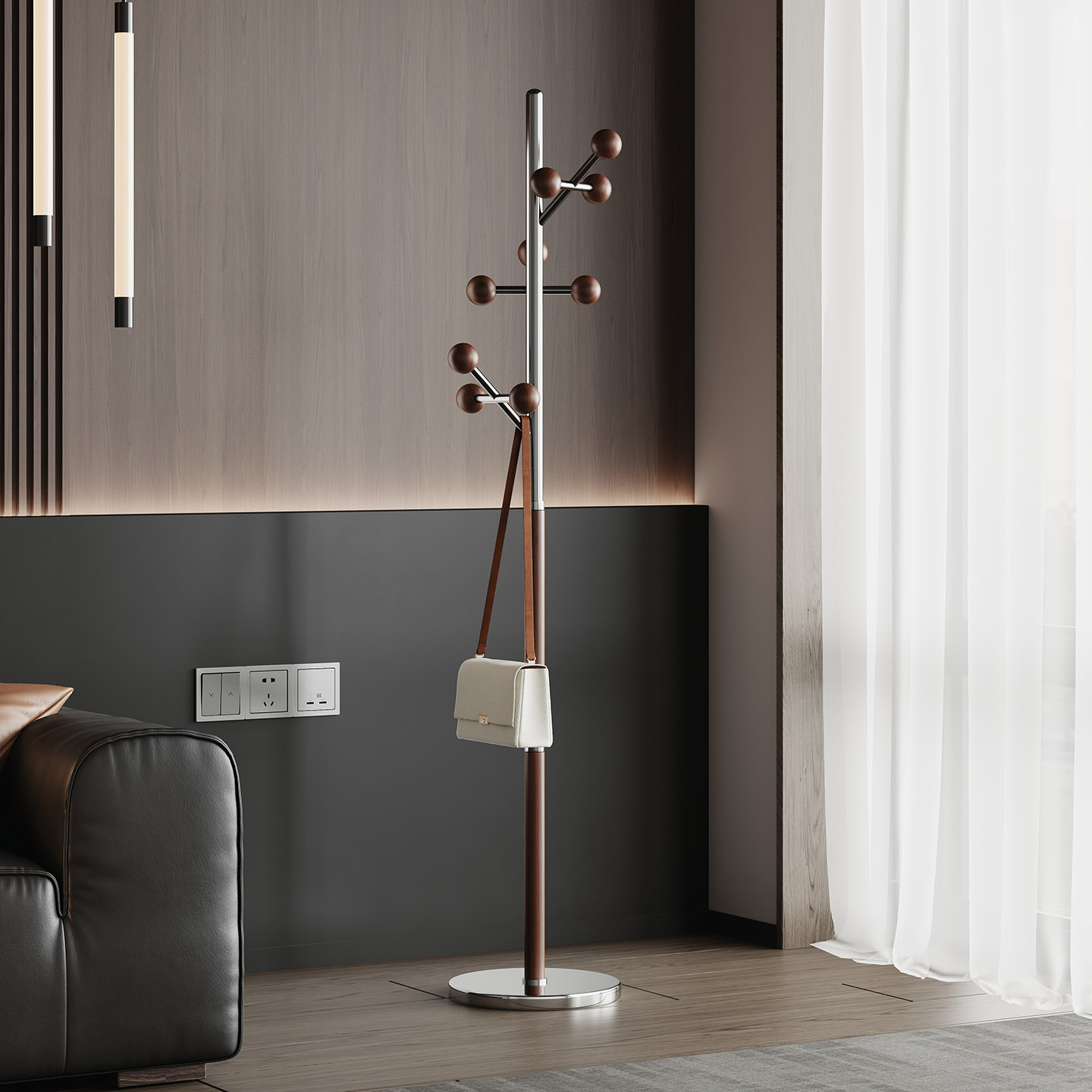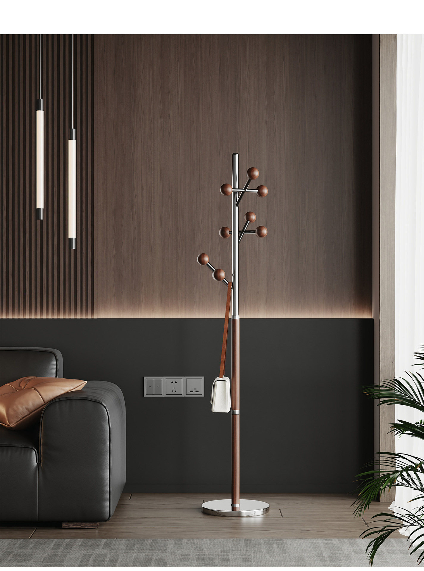 l383 steel wood coat rack walnut color