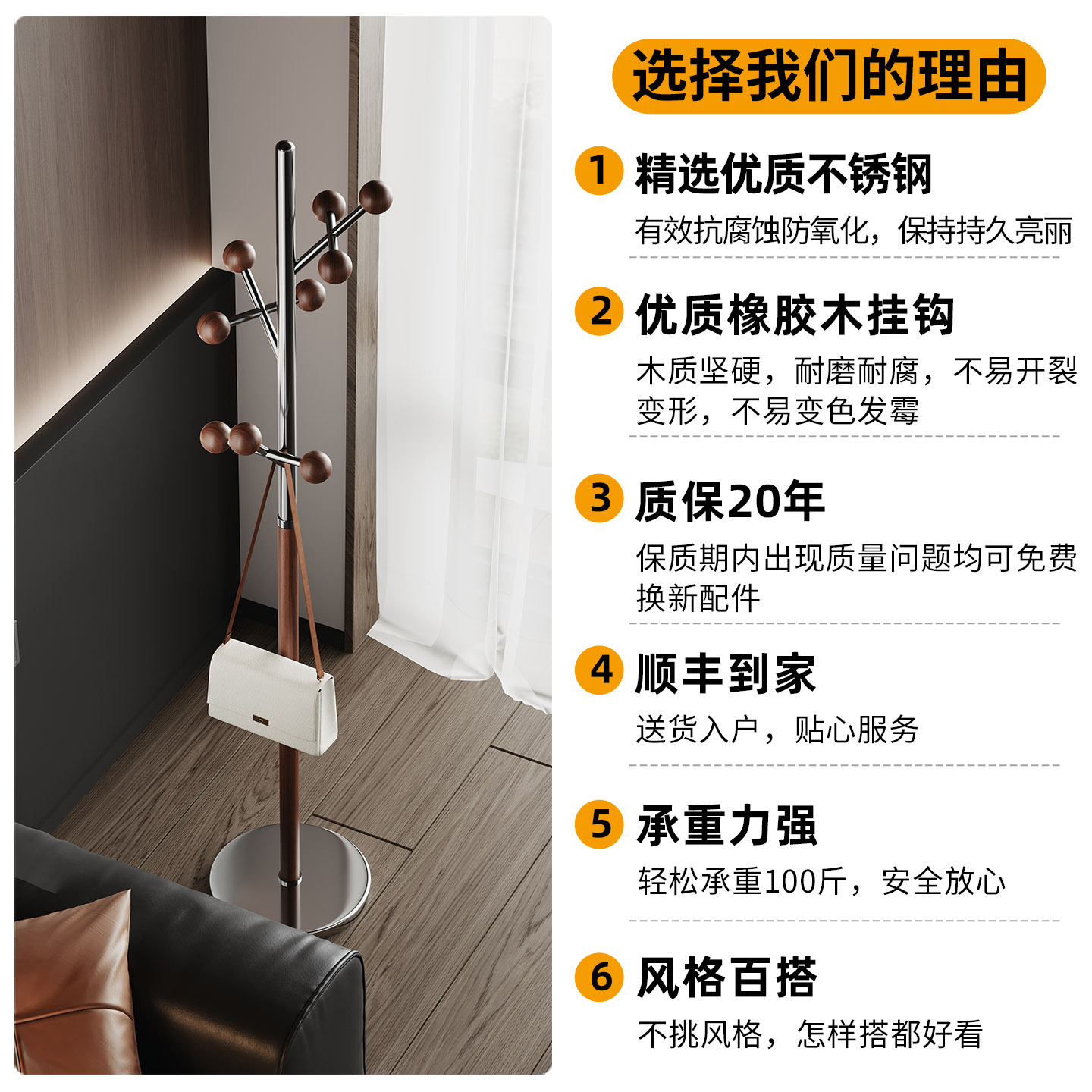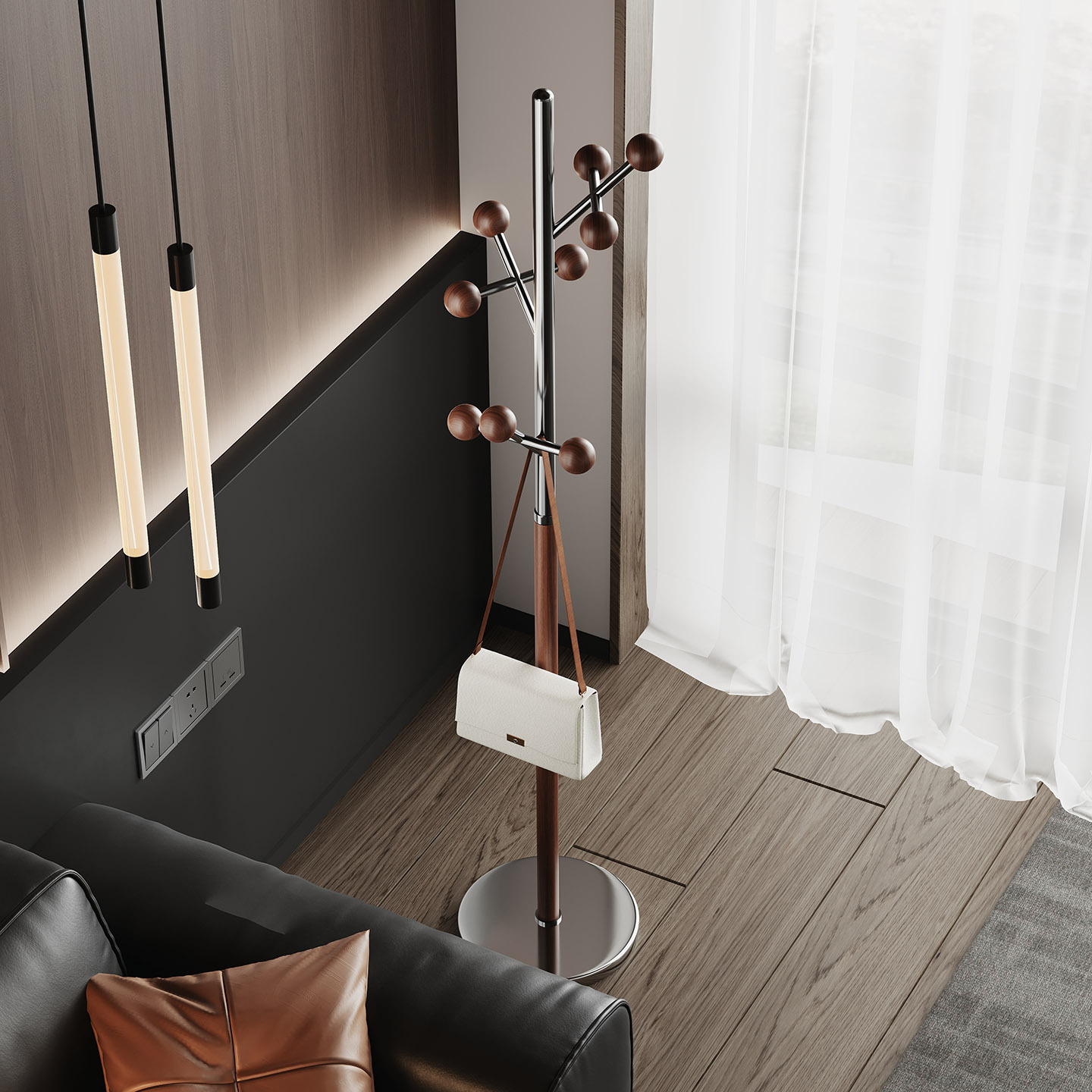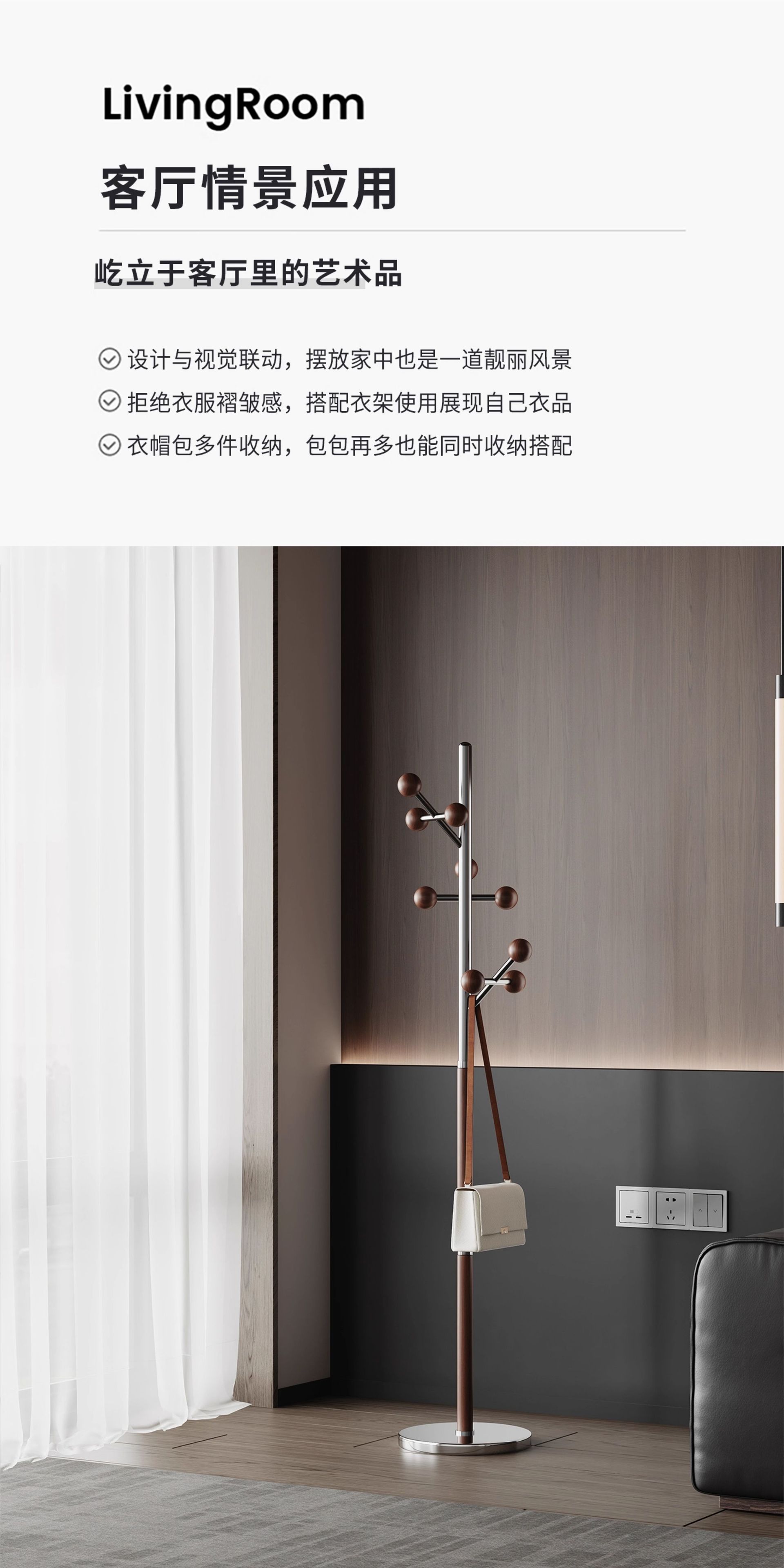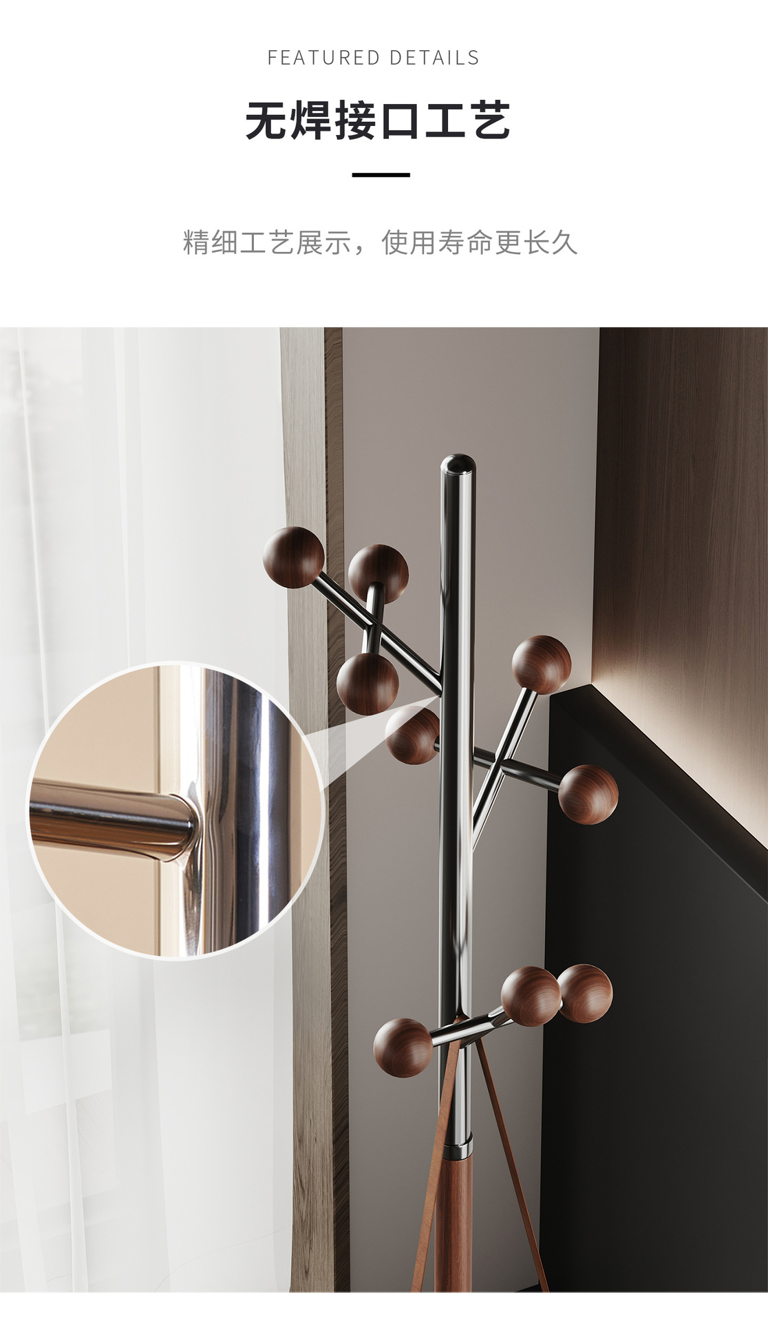 l383 steel wood coat rack walnut color