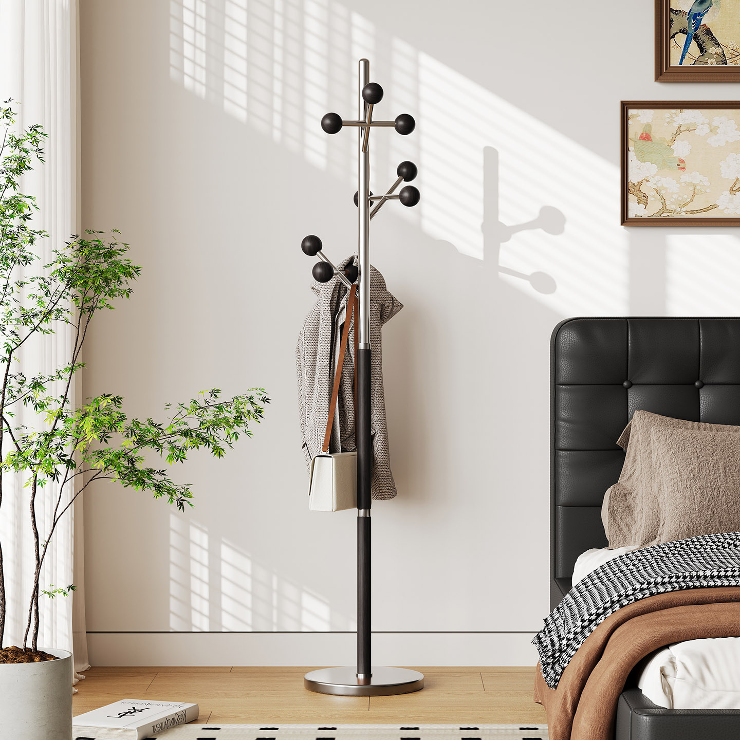 l383 steel wood coat rack black