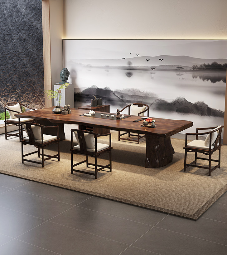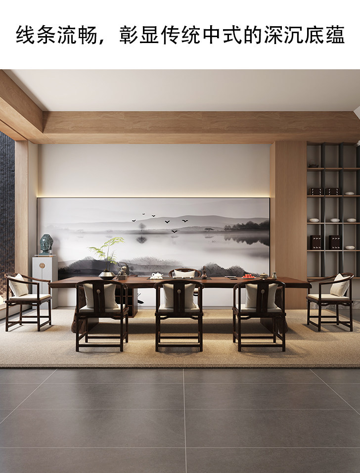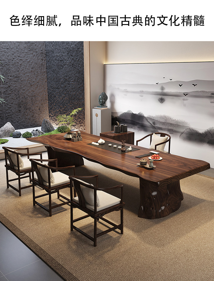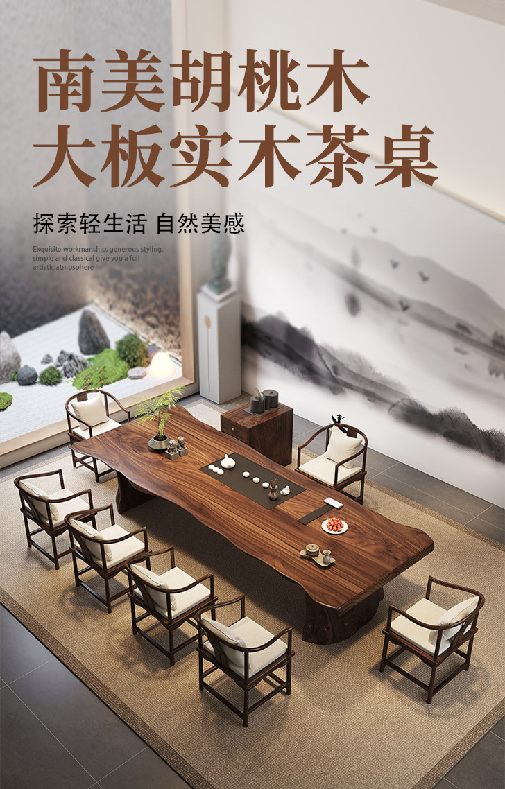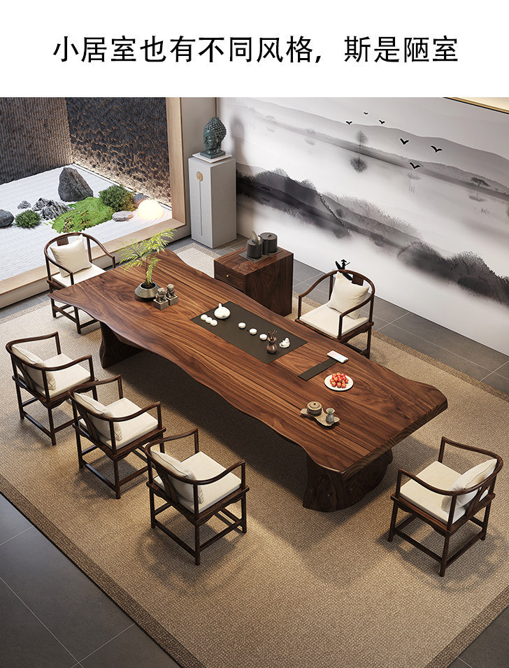 2.6 m south america walnut tea table + round-backed armchair * 6 + limited time gift elegant tea cabinet