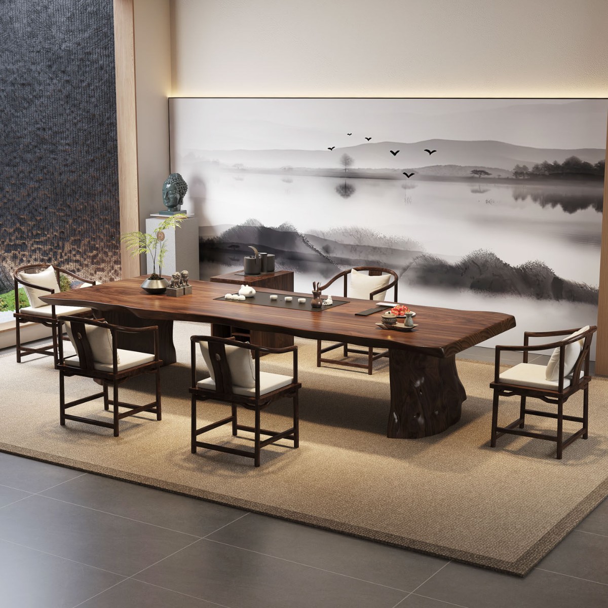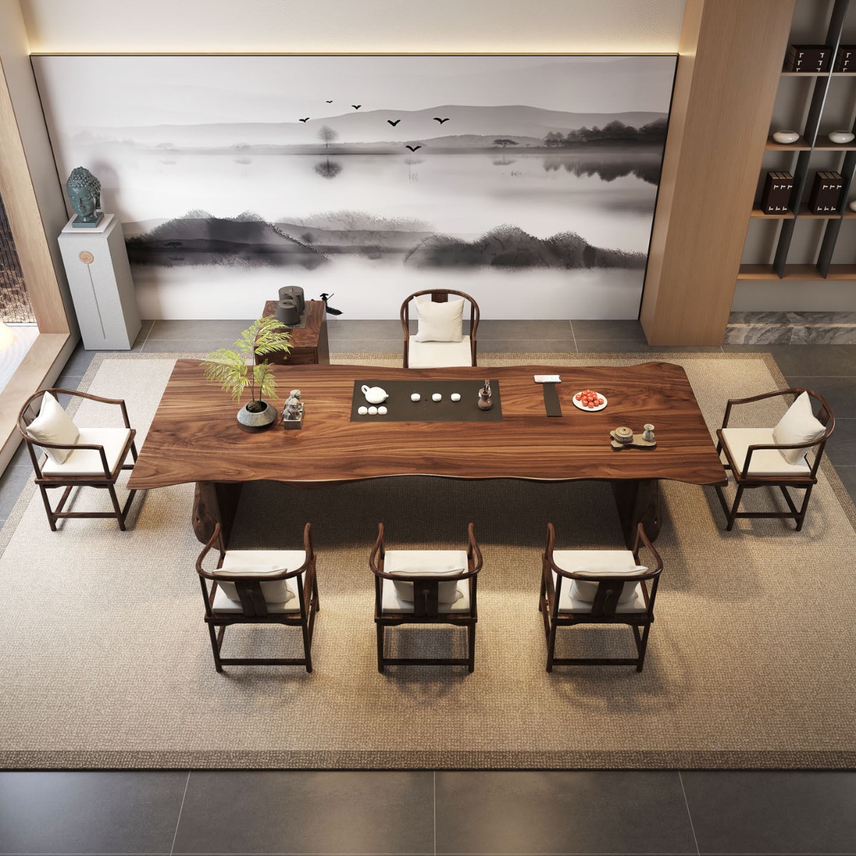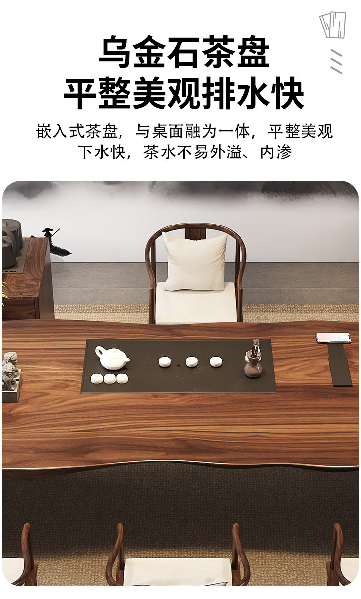 2.6 m south america walnut tea table + round-backed armchair * 6 + limited time gift elegant tea cabinet
