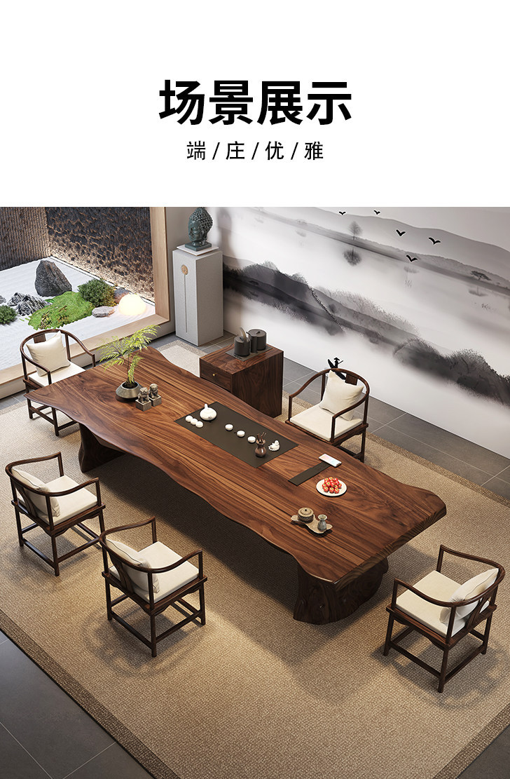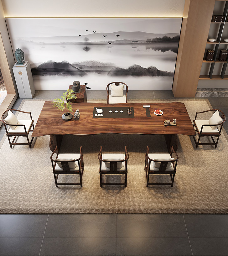 3.0 m south america walnut tea table + round-backed armchair * 7 + limited time gift elegant tea cabinet