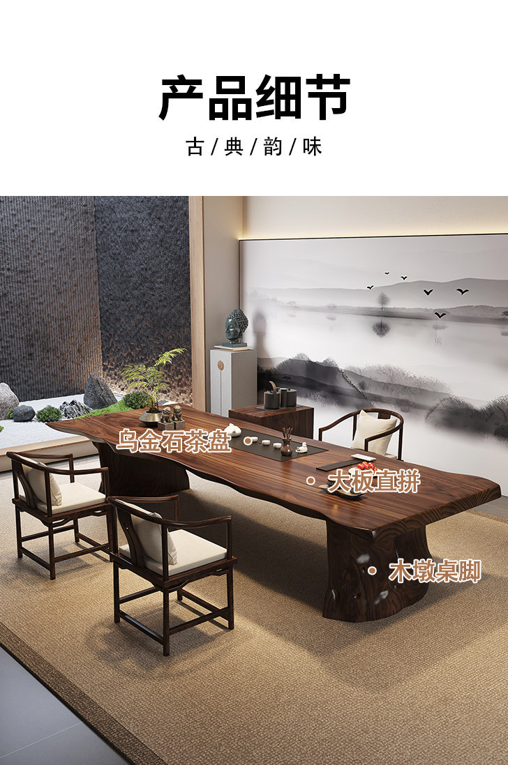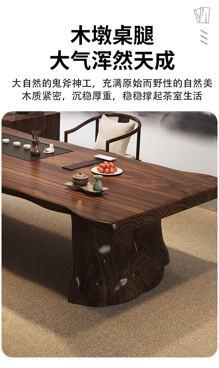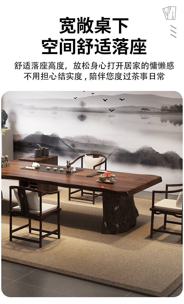 2.2 m south america walnut tea table + round-backed armchair * 3 + crescent stool * 2+1.0 m bench + limited time gift elegant tea cabinet