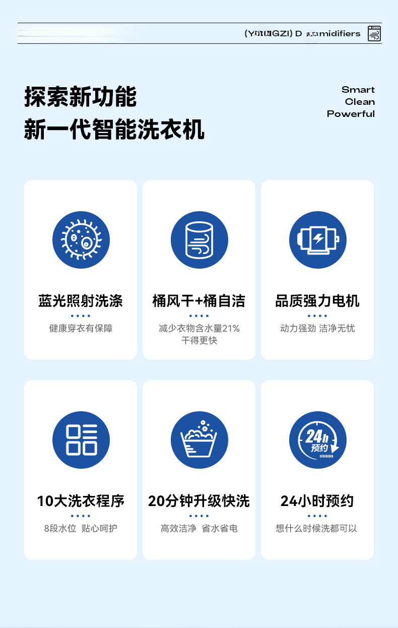 6.5kg strong air drying + blue light washing + strong decontamination