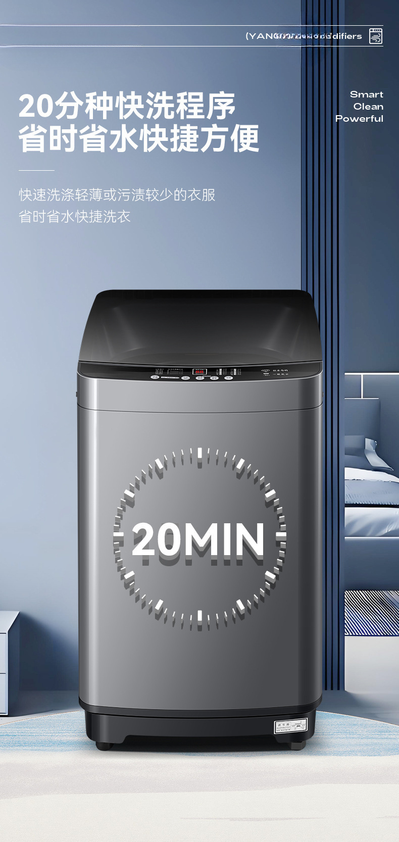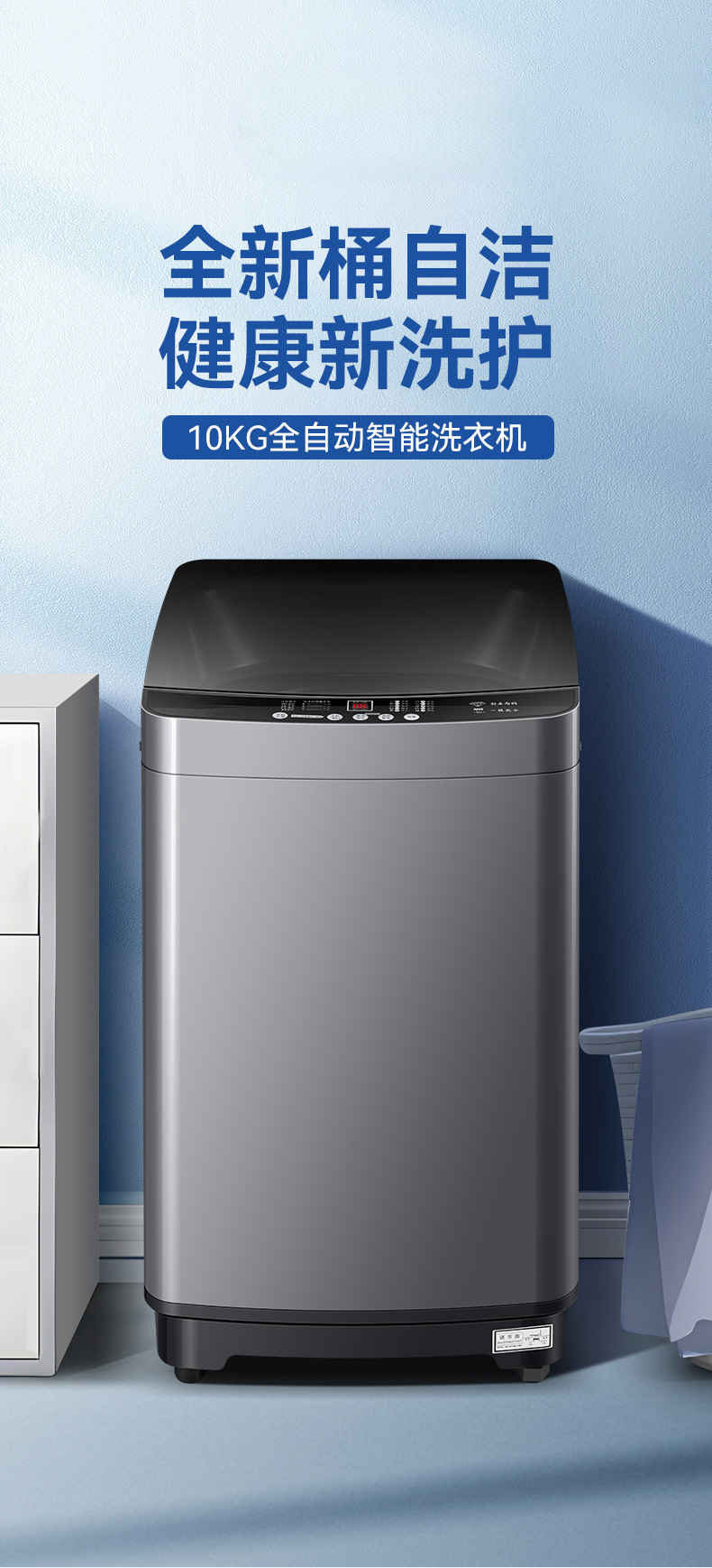 12kg powerful spin drying + blue-light sterilization wash + powerful stain removal