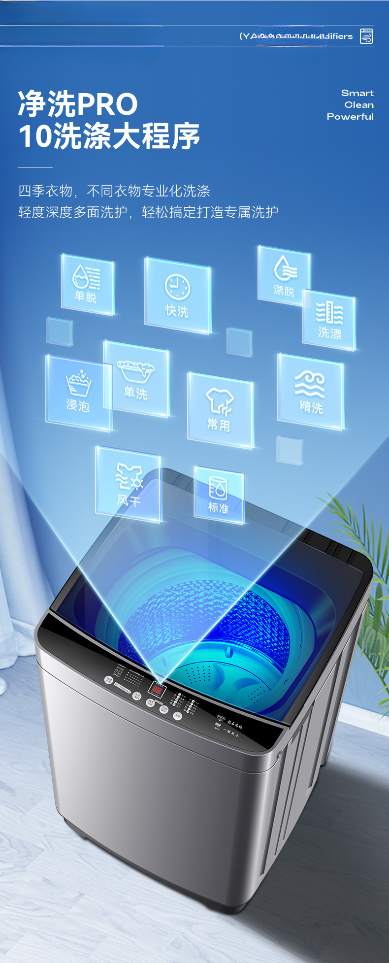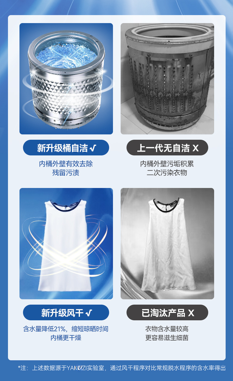 11kg powerful spin drying + blue-light sterilization + powerful stain removal
