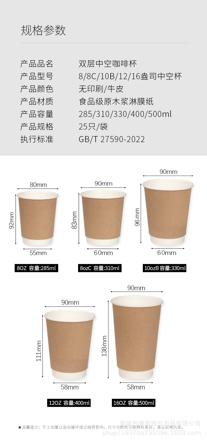 16oz 90 caliber double layer white cup; 1