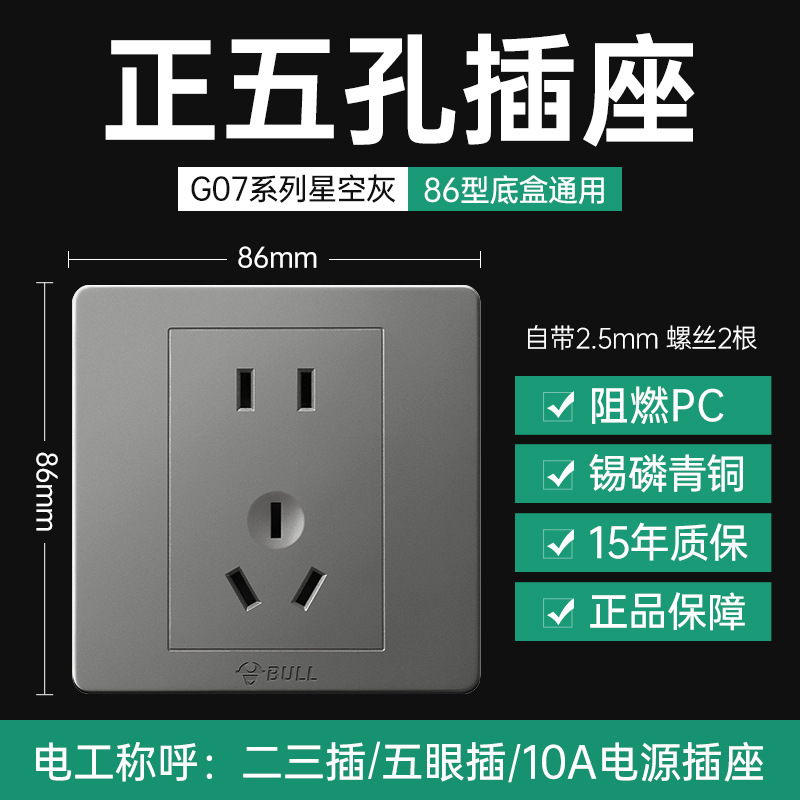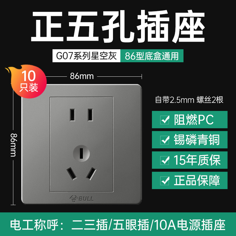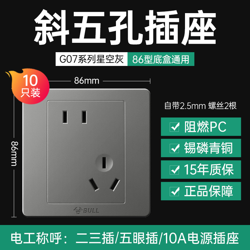 [ten pack] oblique five-hole socket [starry sky gray]]