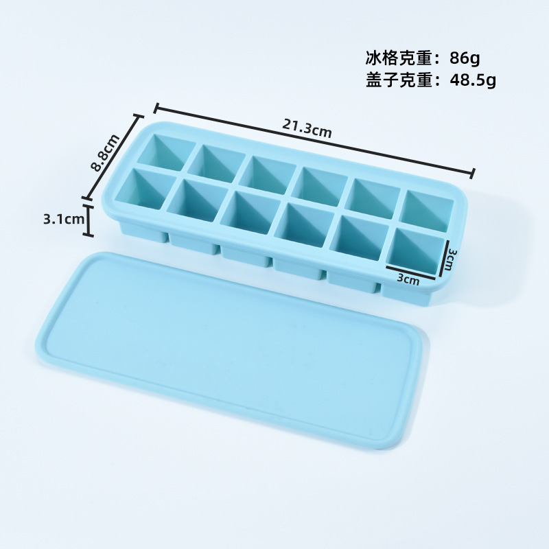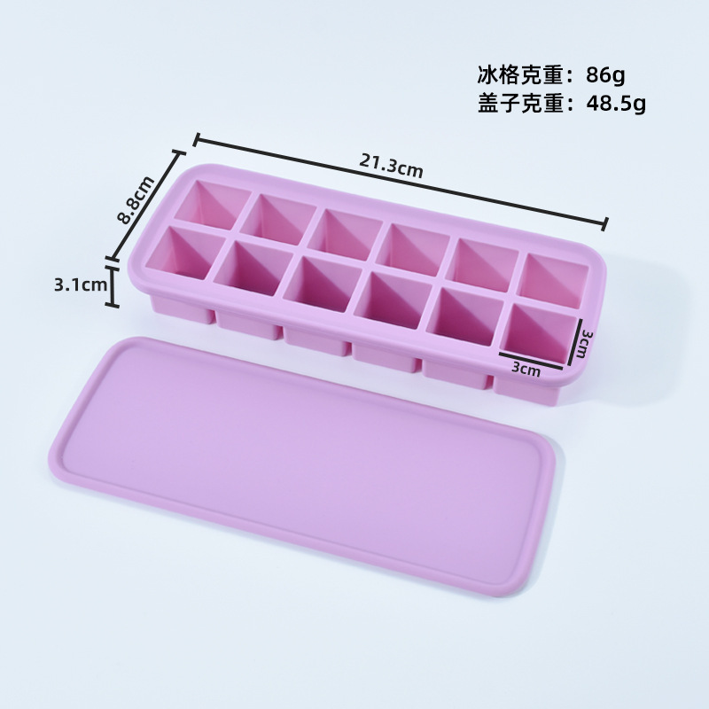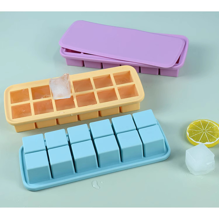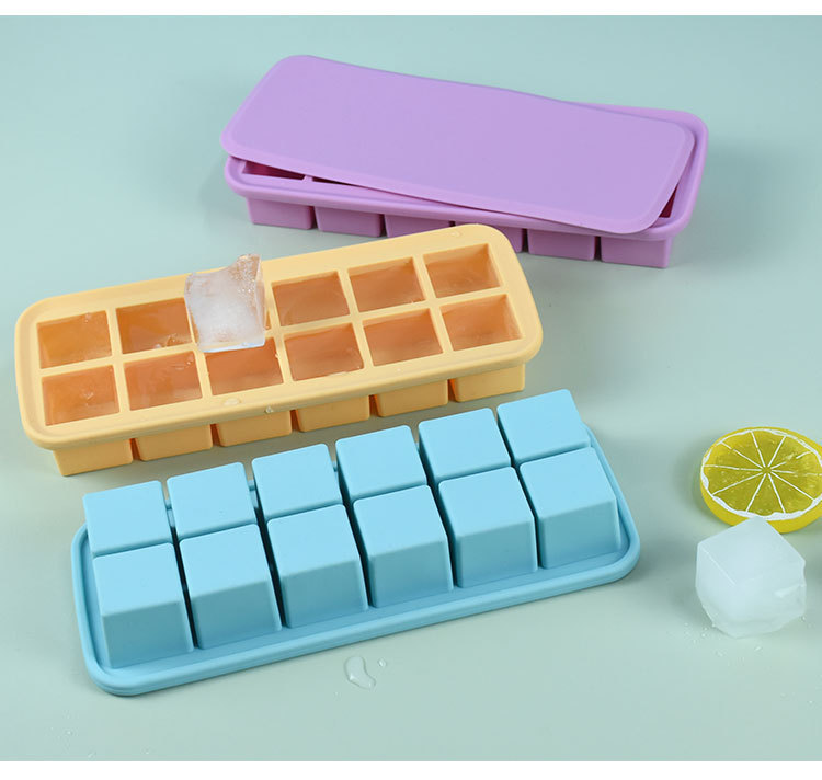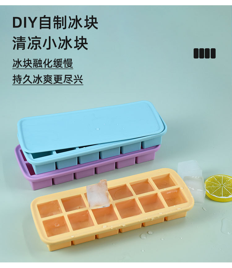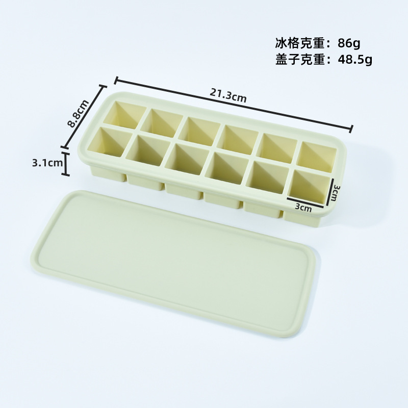 12-hole square ice cube mold with easy-release design, perfect for making ice cubes and baby food containers, 12 compartments with lids, silicone ice cube mold