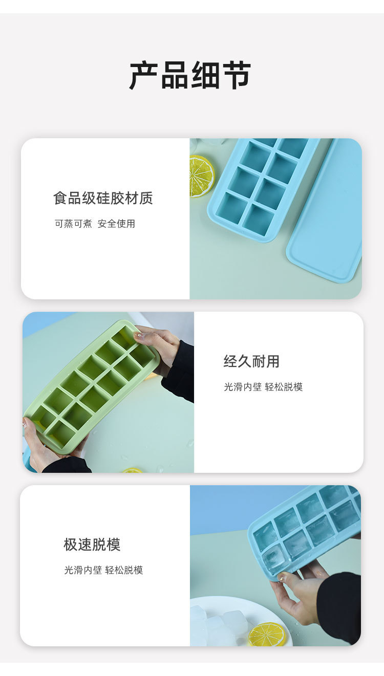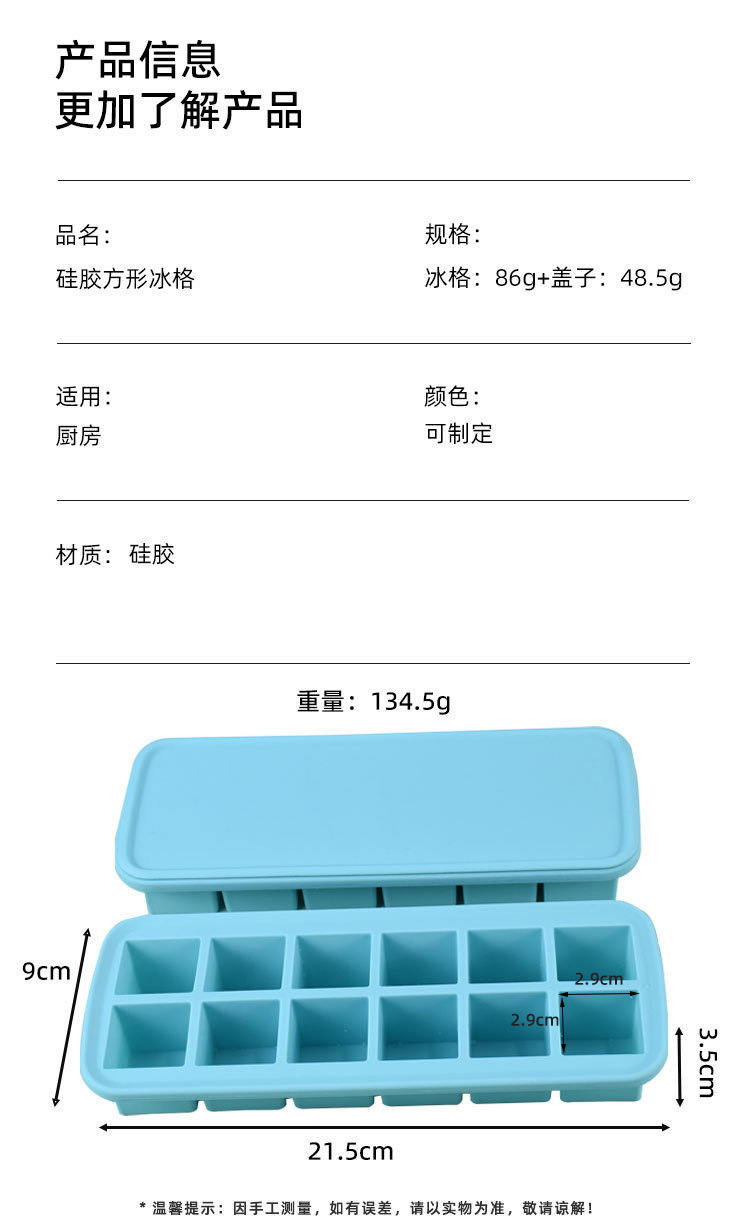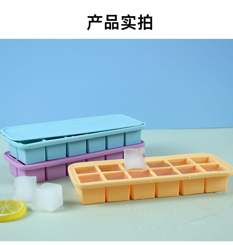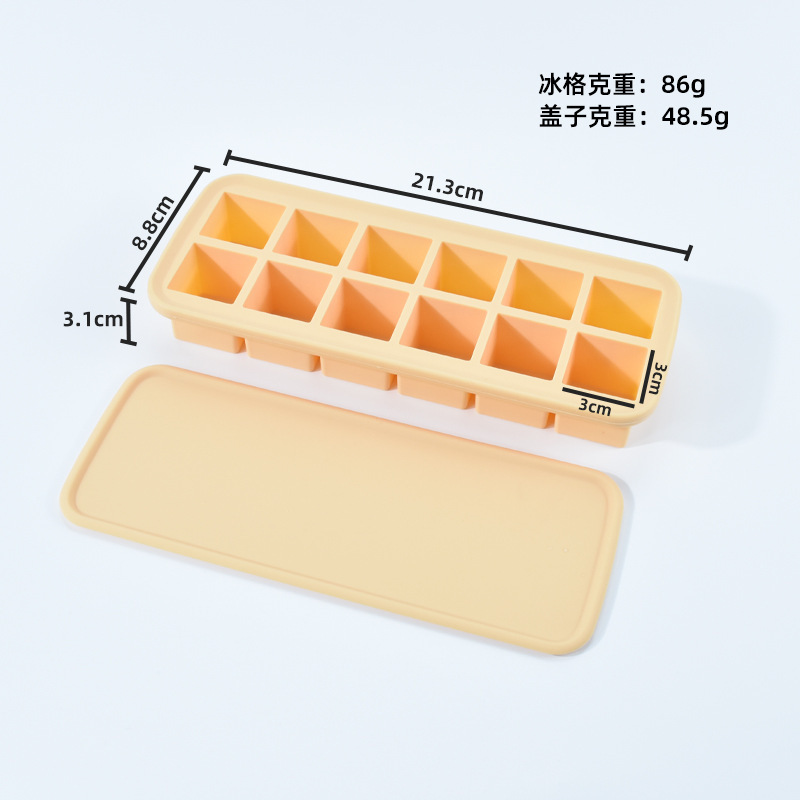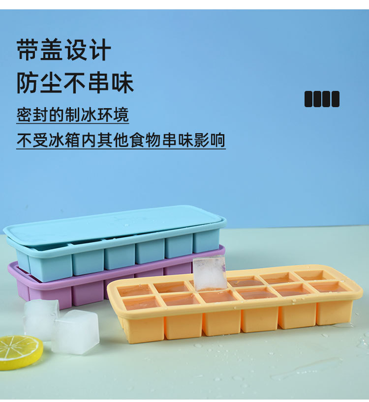 12-hole square ice cube mold with easy-release design, perfect for making ice cubes and baby food containers, 12 compartments with lids, silicone ice cube mold