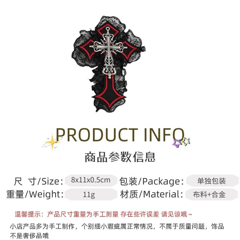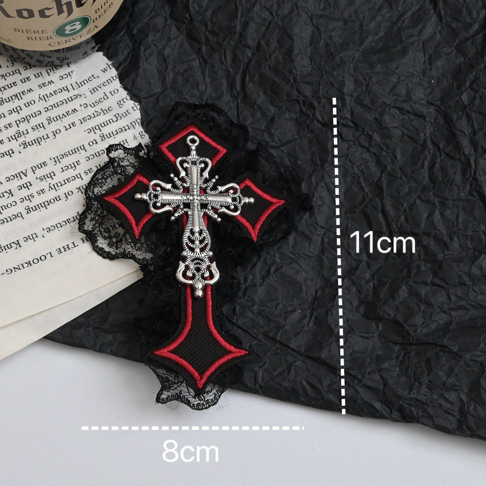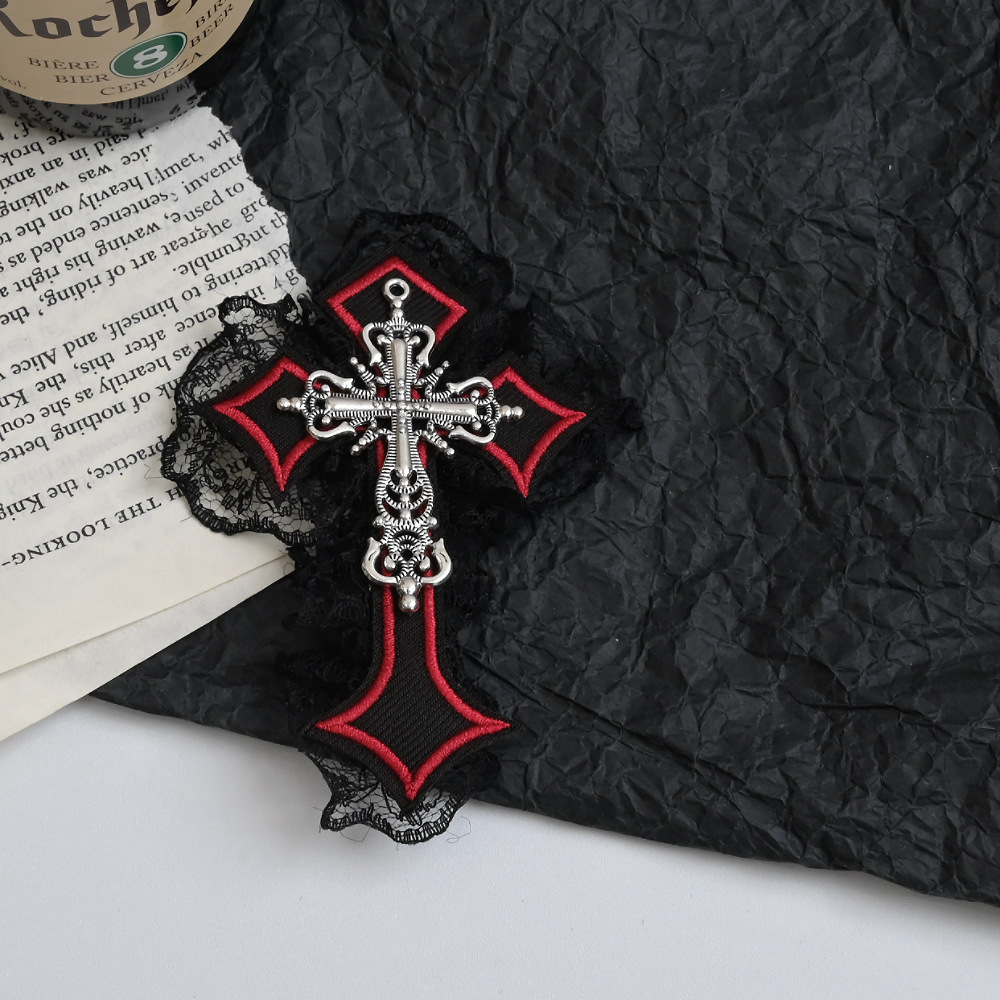 4# red cross black lace barrettes