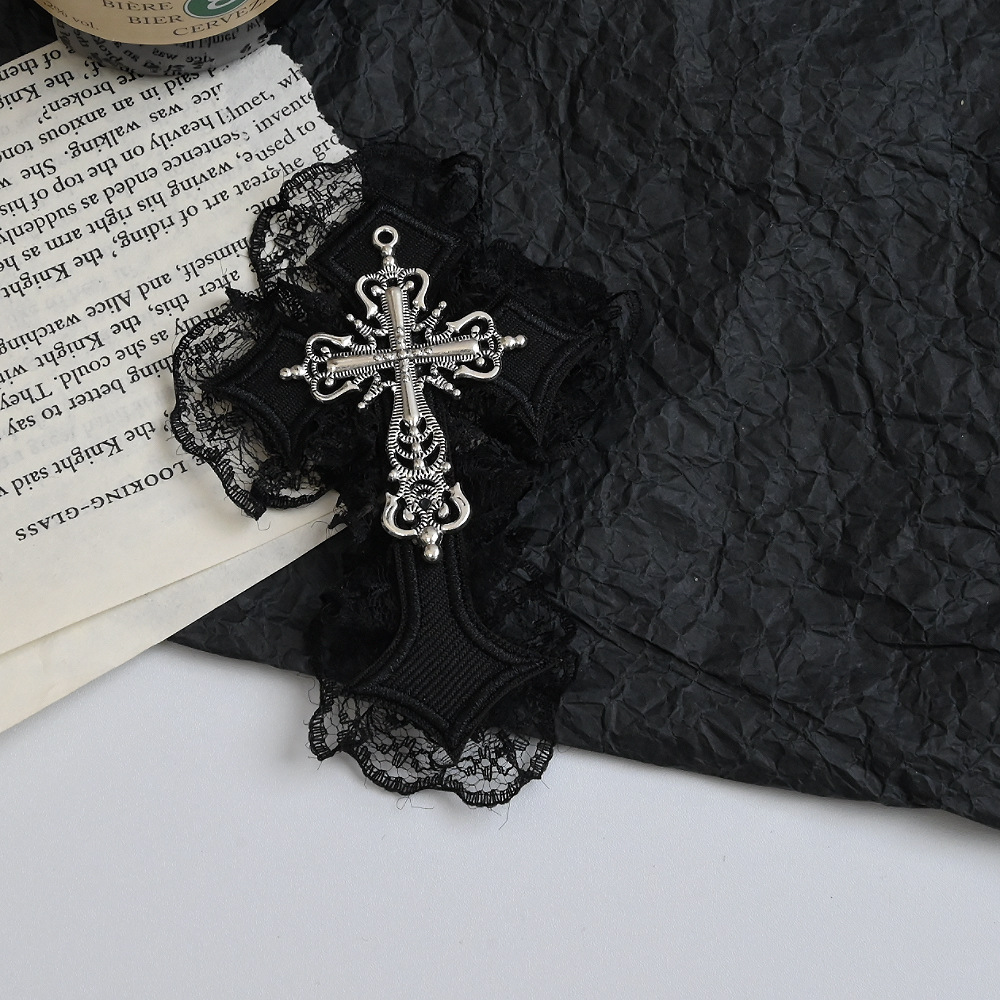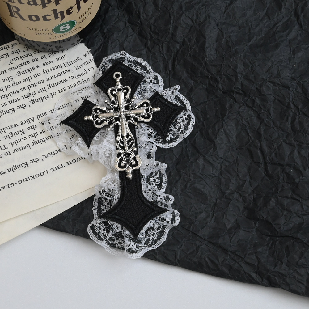 5# black cross black lace barrettes