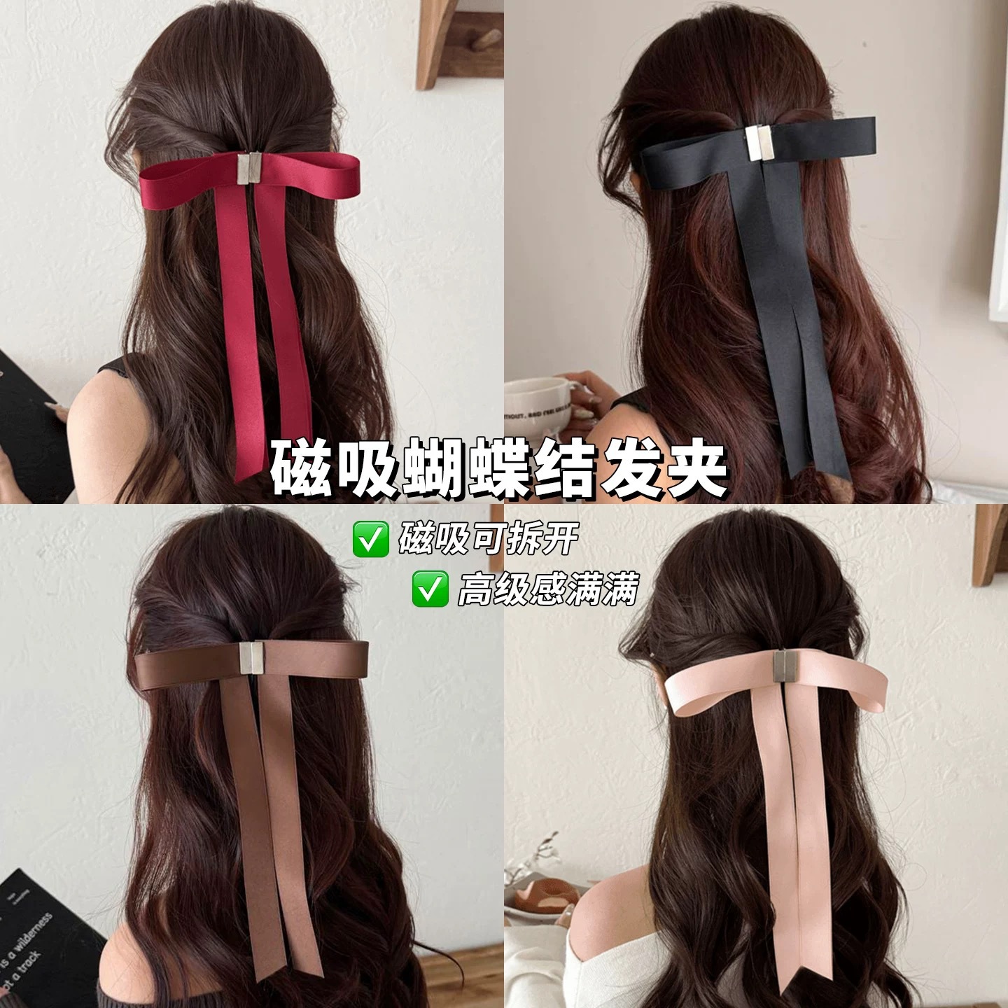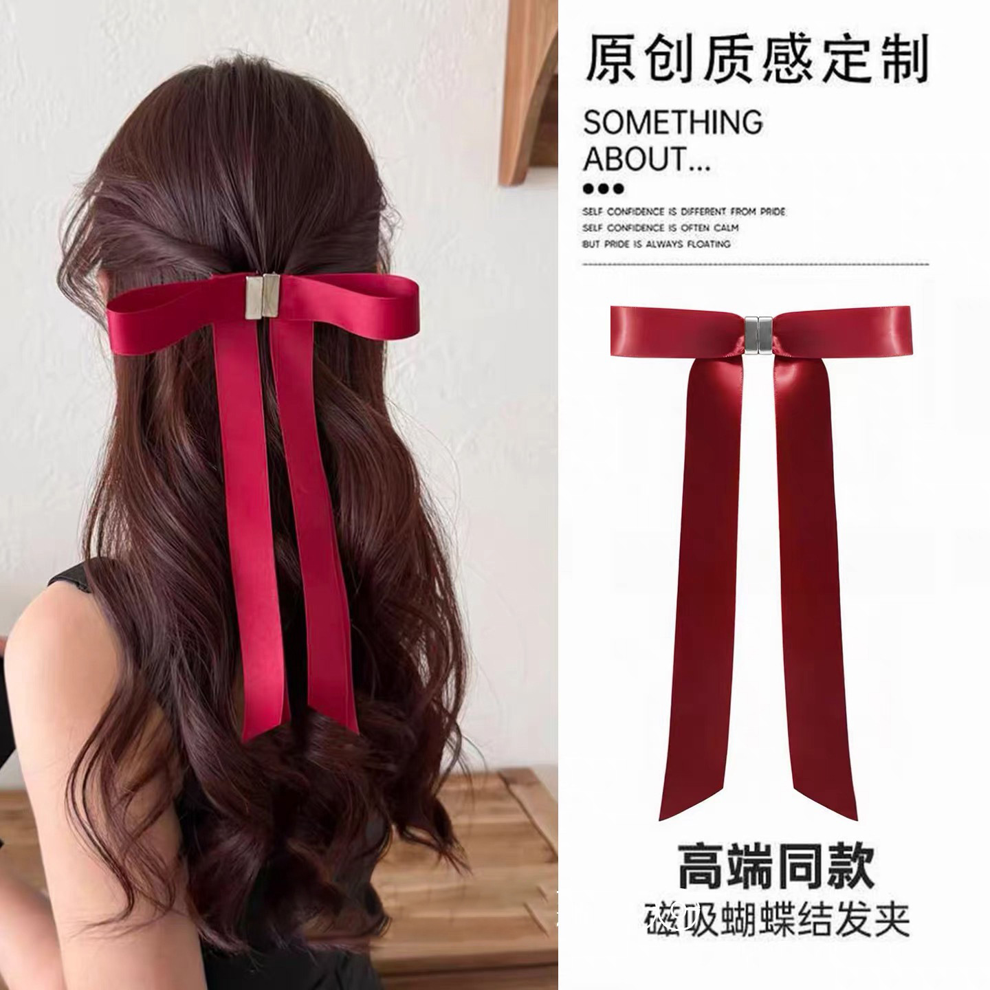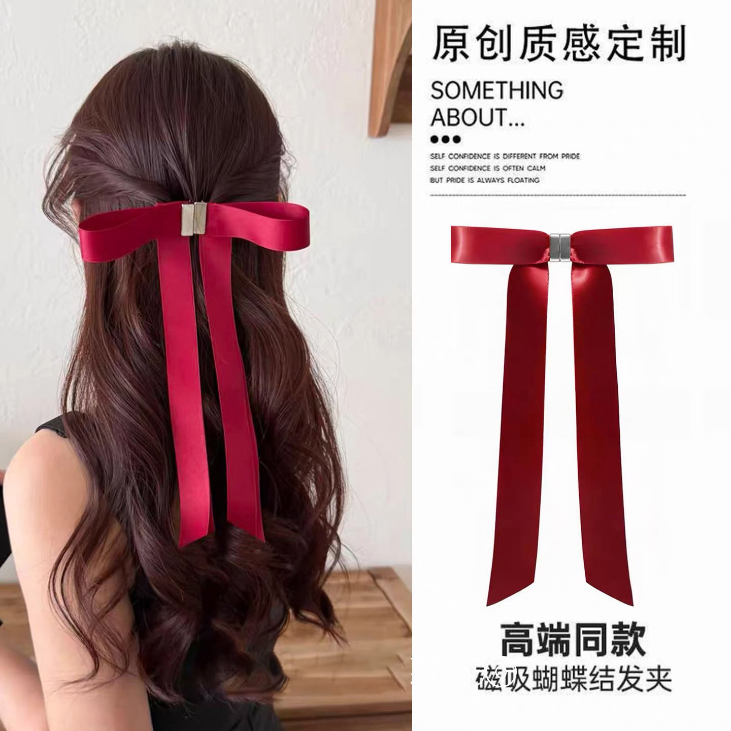 a pair of magnetic bow claw clip-red