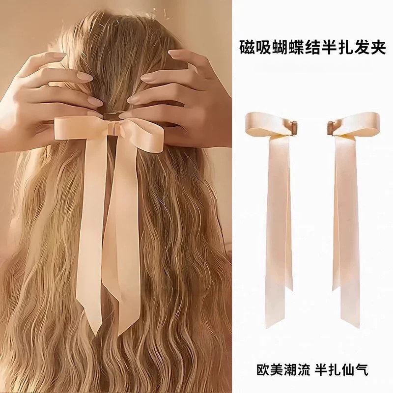 a pair of magnetic bow claw clip-champagne