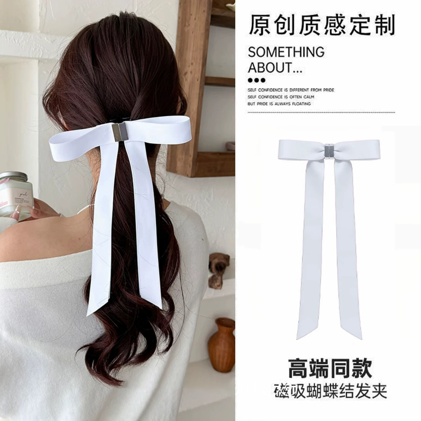 a pair of magnetic bow claw clip-white