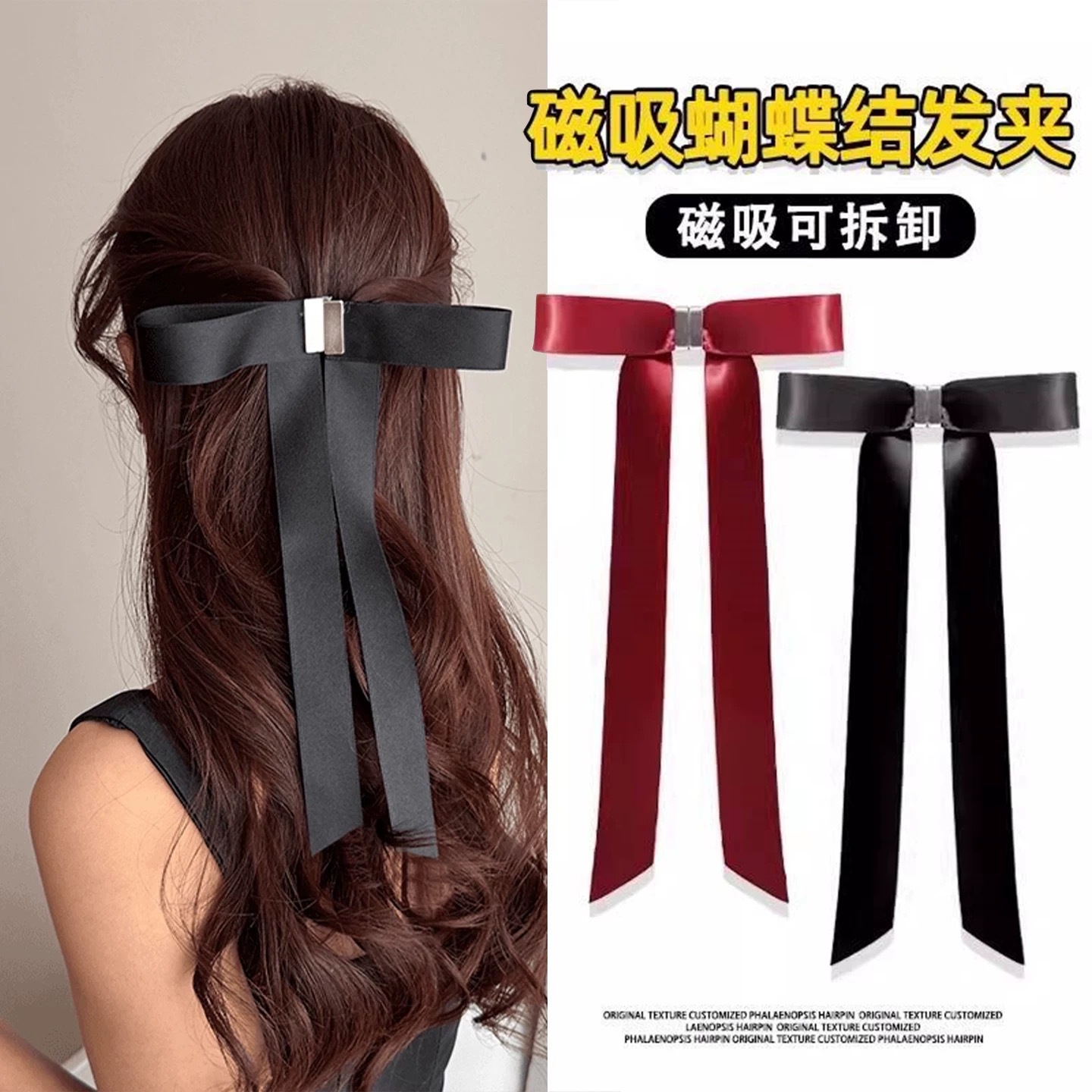 a pair of magnetic bow claw clip-black