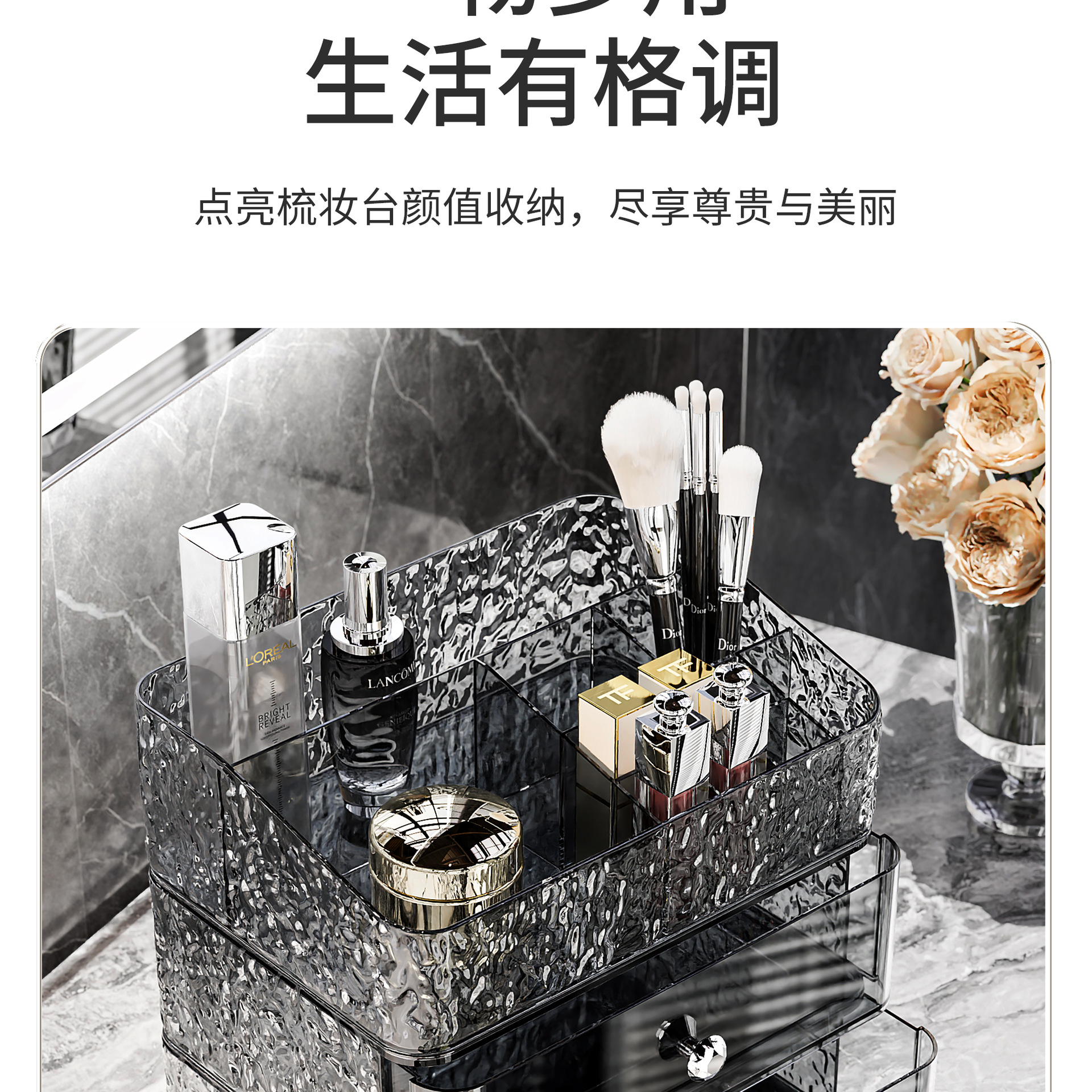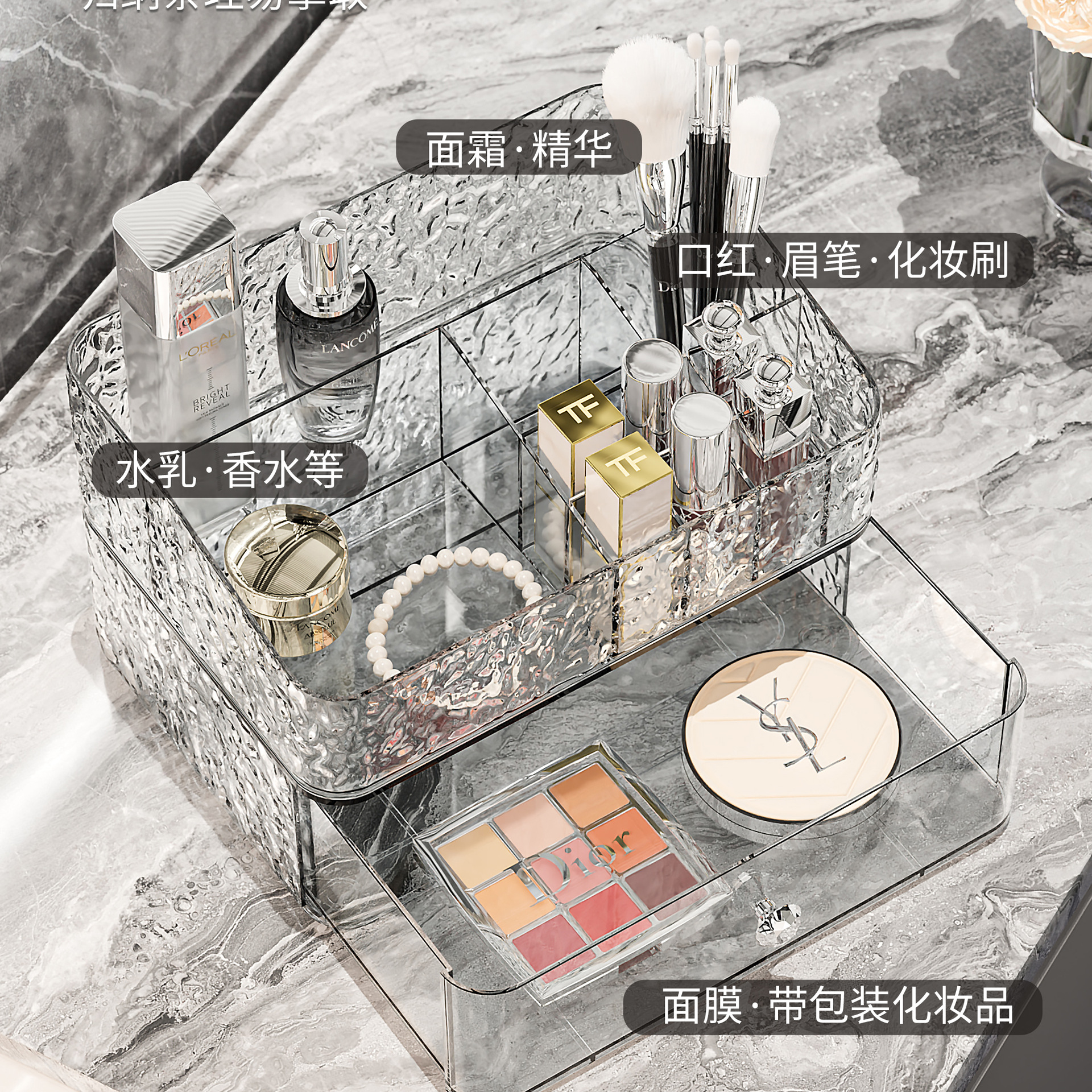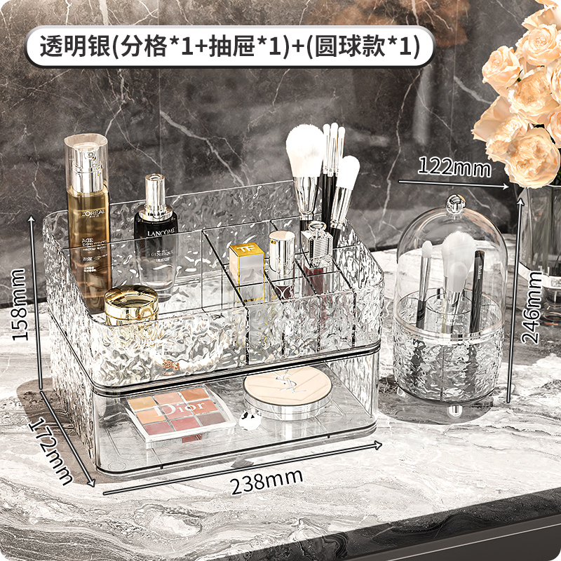 combination a: transparent silver [grid single layer + drawer single layer * 1 + (ball type) makeup brush holder]]