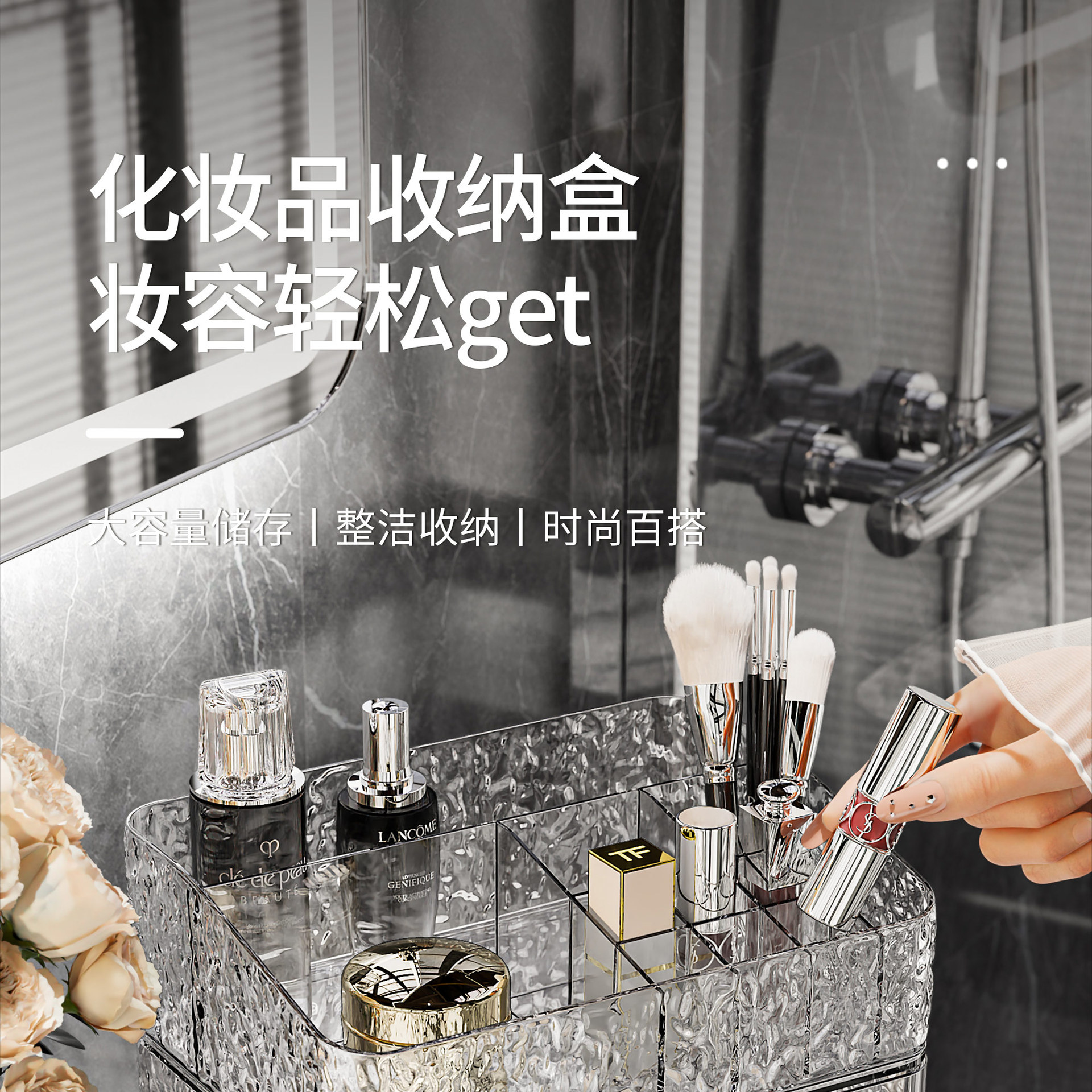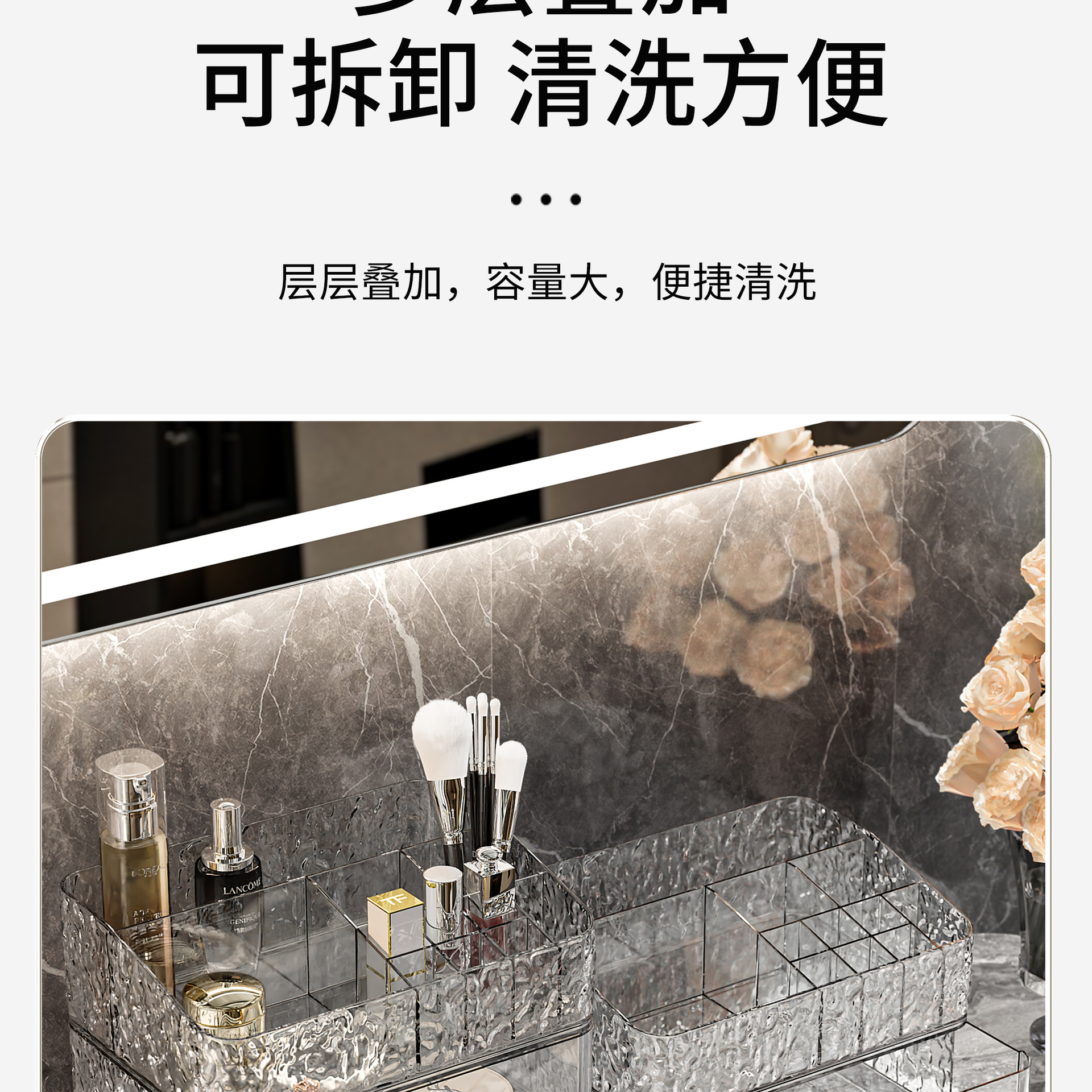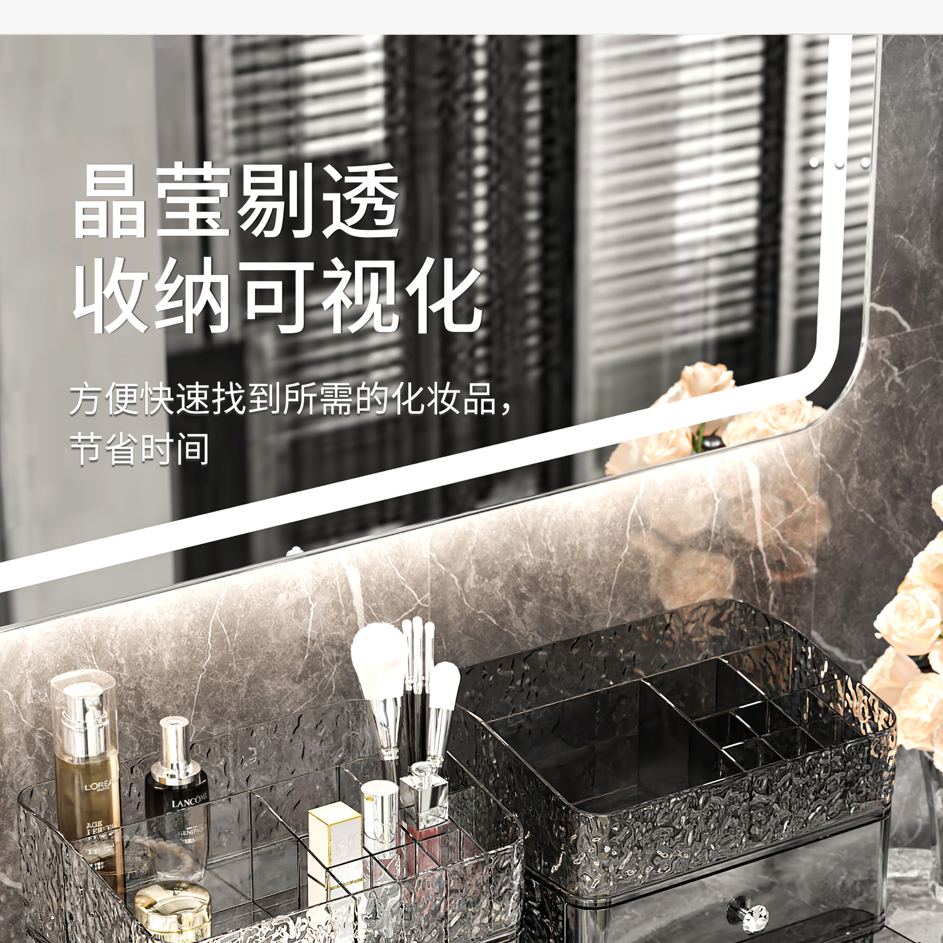 combination a: transparent silver [grid single layer + drawer single layer * 1 + (ball type) makeup brush holder]]