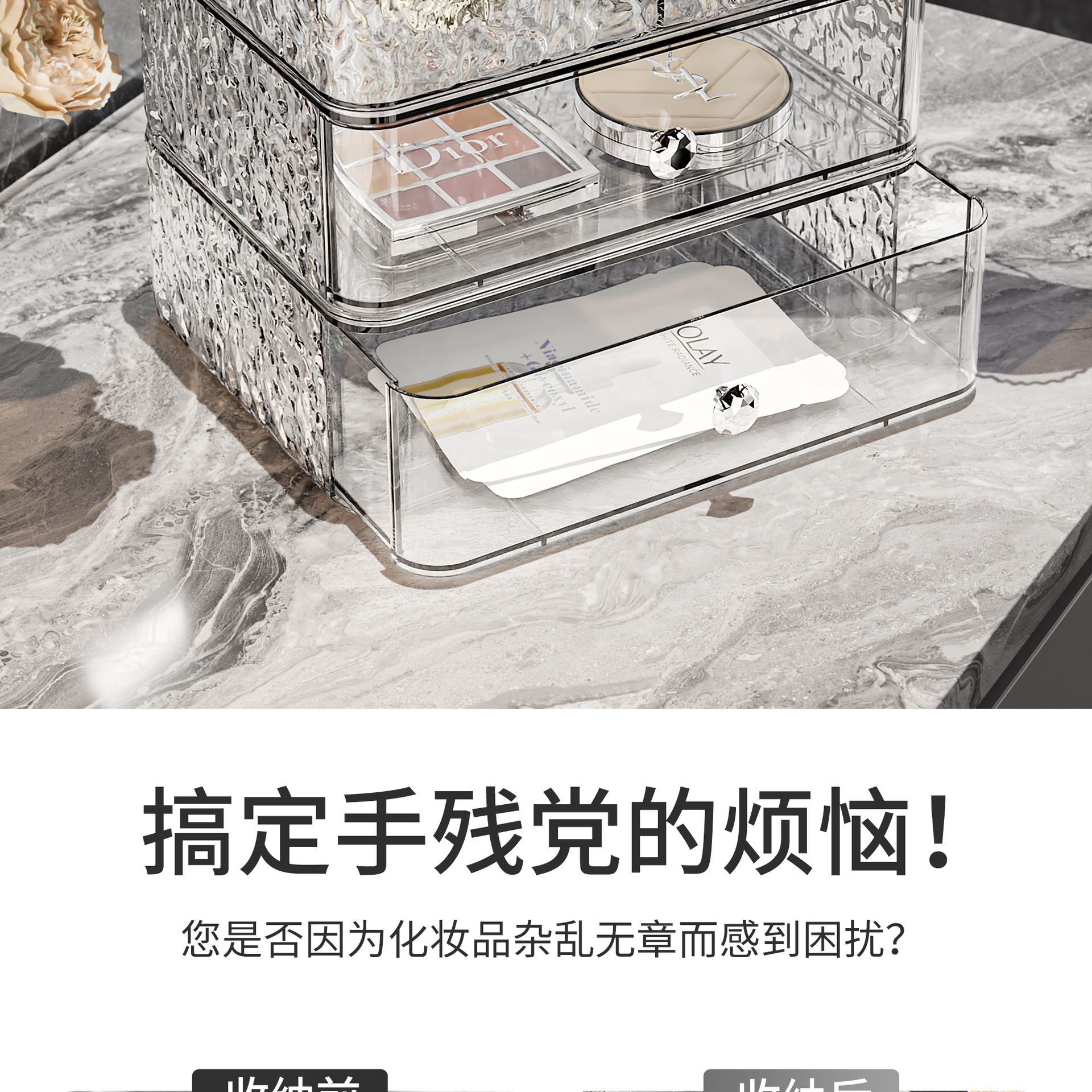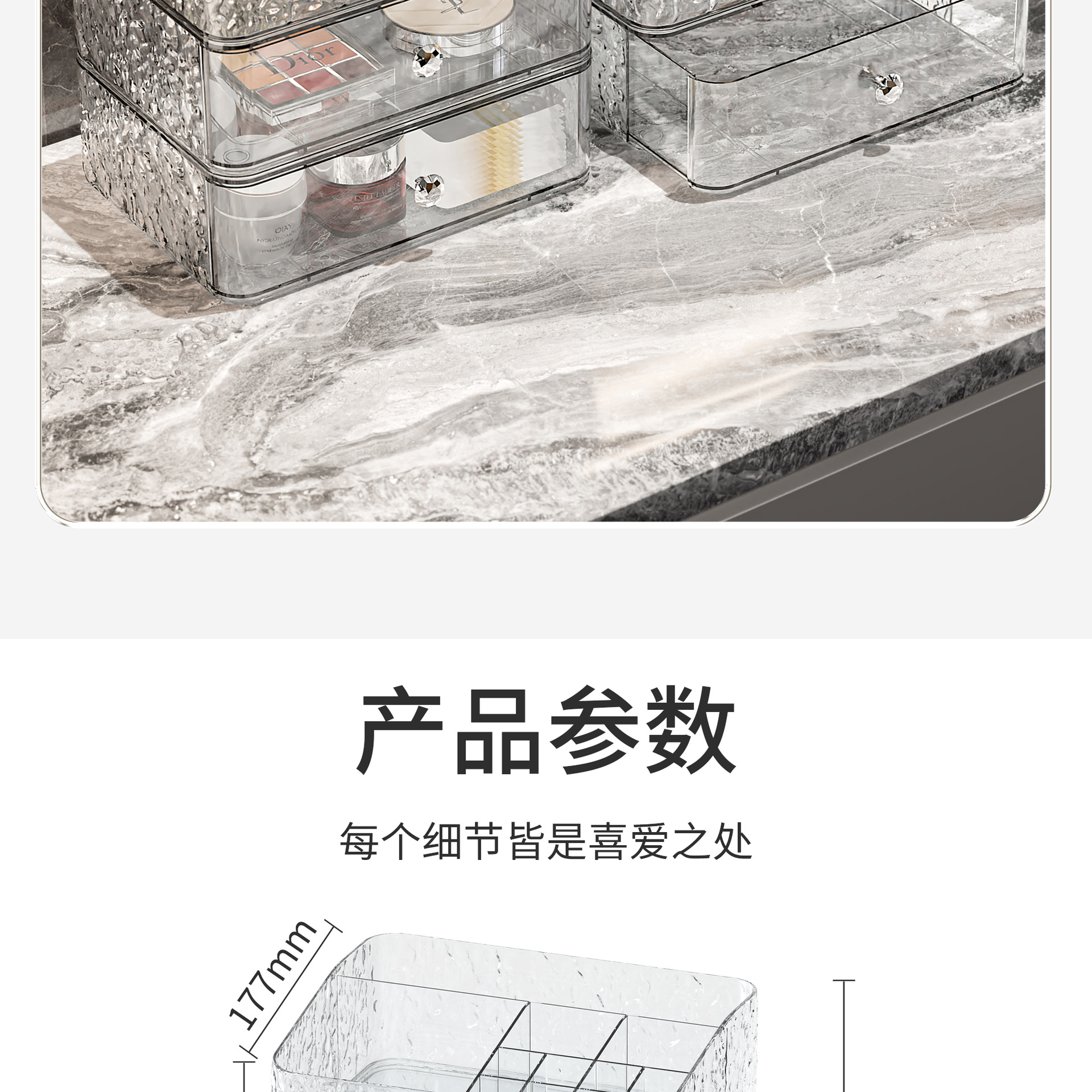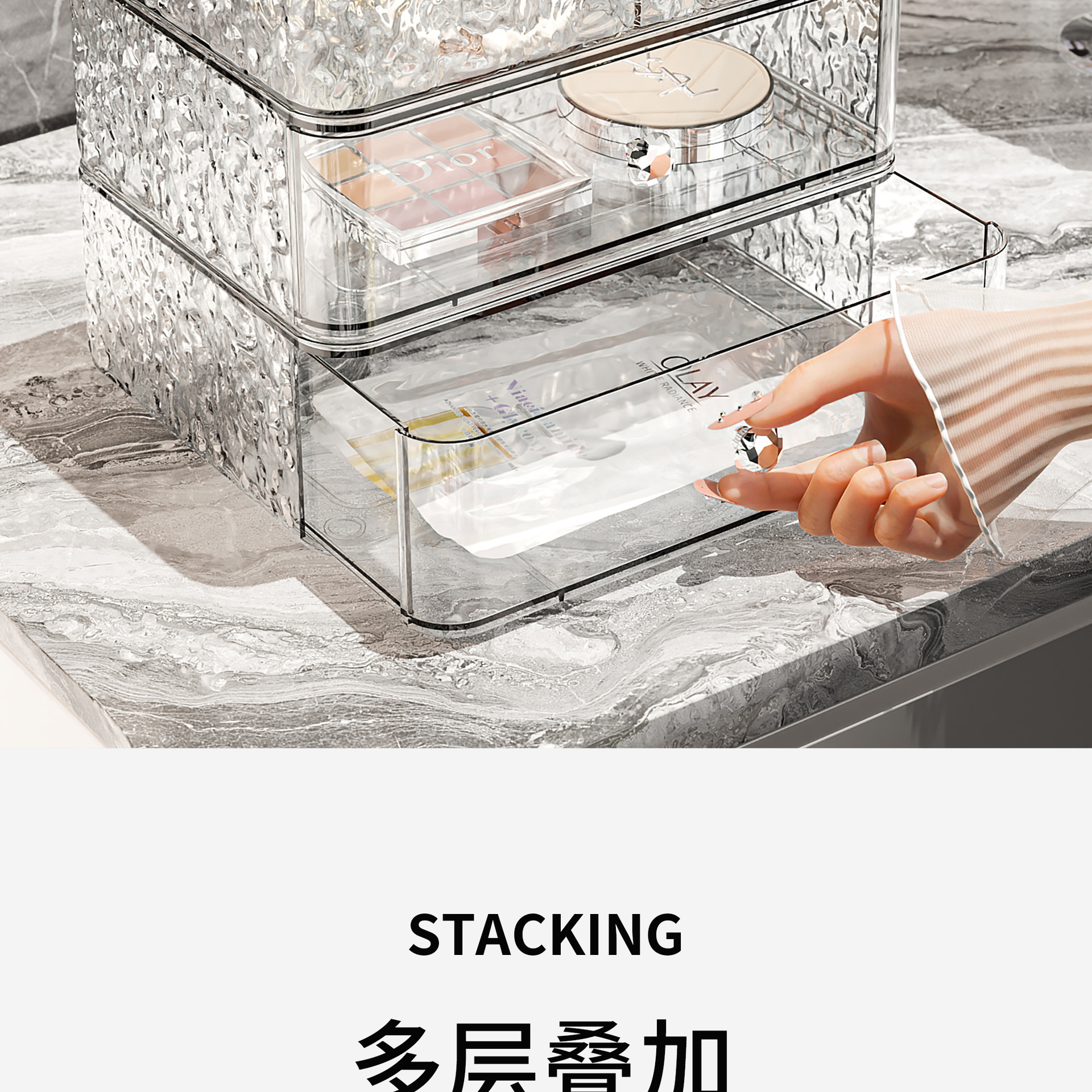 upgraded style 2-layer transparent silver [dustproof storage box + drawer single layer * 1]]