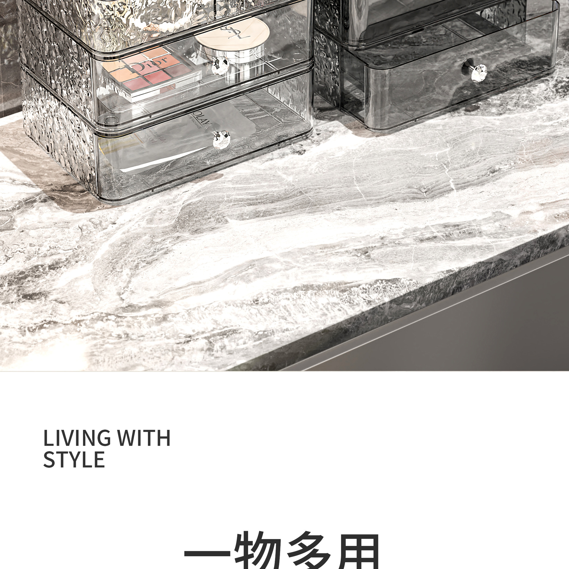 upgraded style 2-layer transparent gray silver [dustproof storage box + drawer single layer * 1]]