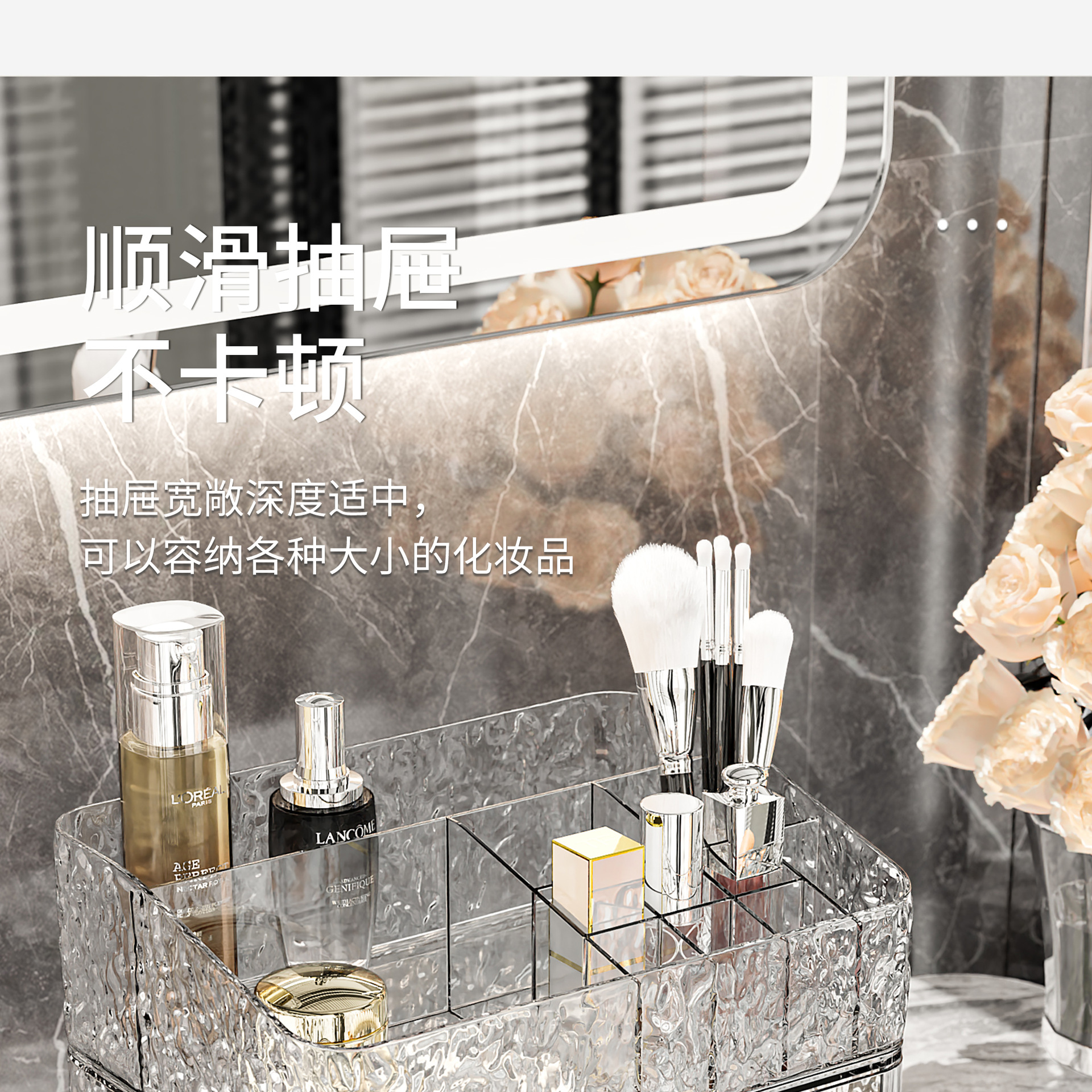 transparent gray silver-single-layer drawer