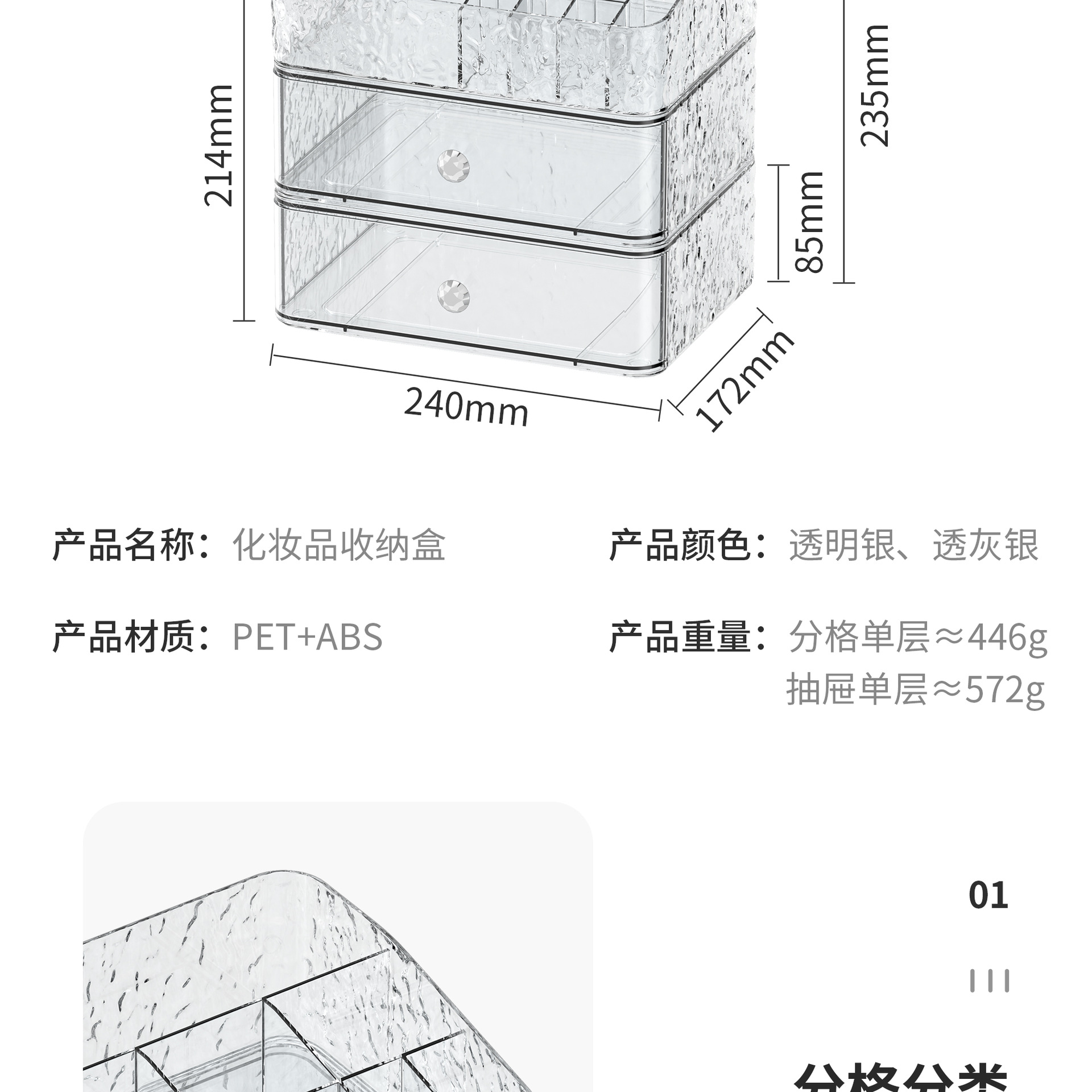 2-layer transparent gray silver [grid single layer + drawer single layer * 1]]