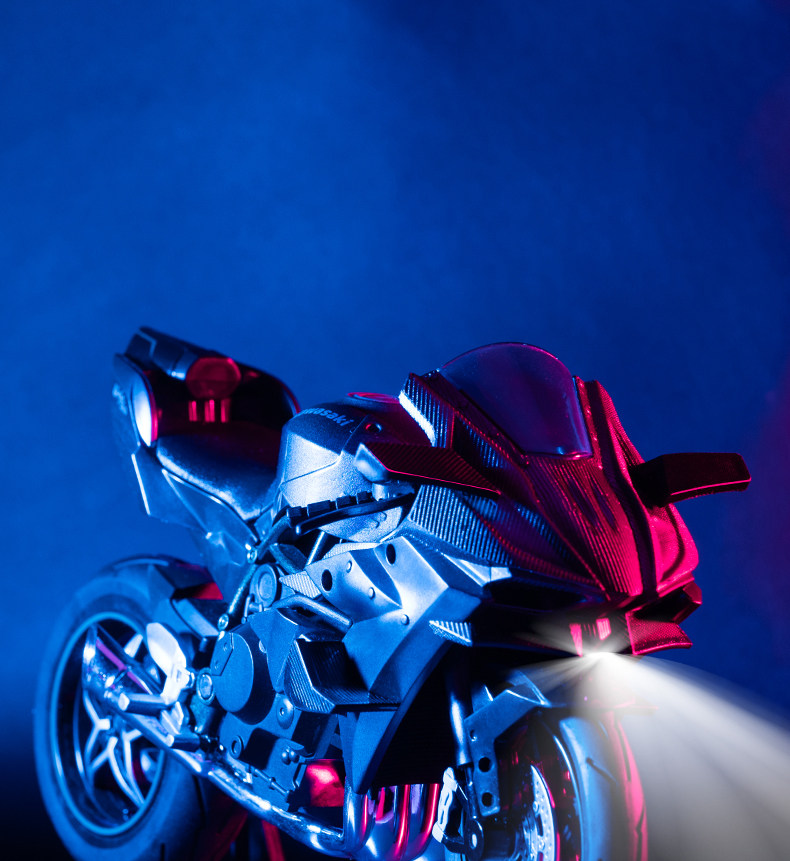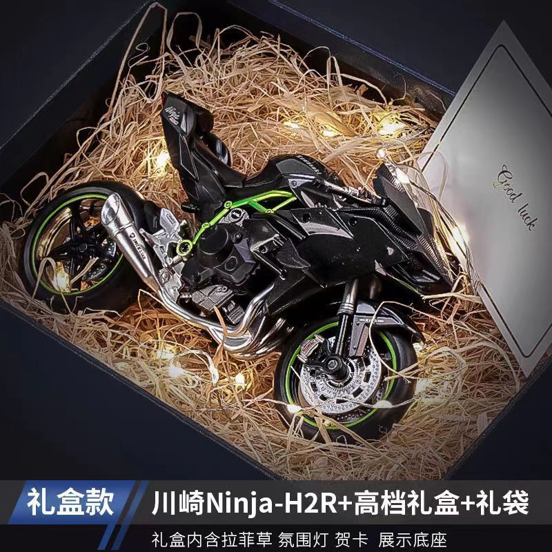 large 1-10 kawasaki h2r + portable gift box + raffia + ambience light greeting card